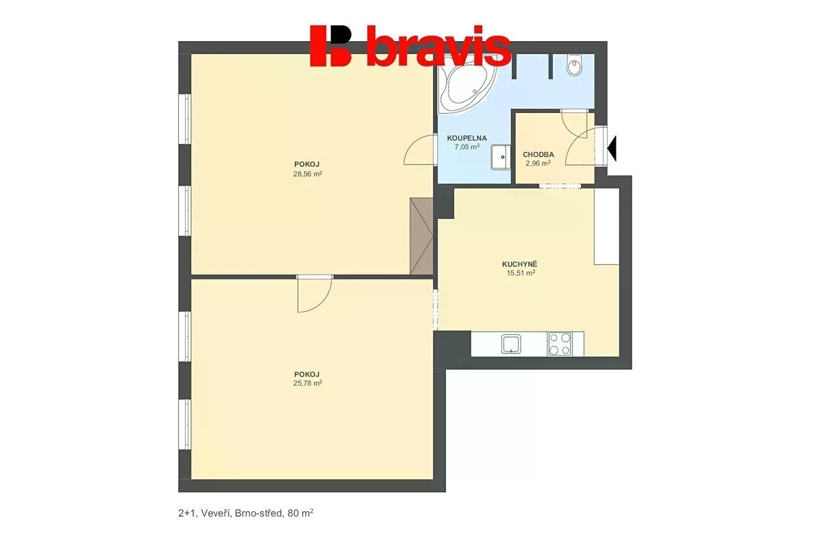 Pronájem bytu 2+1 80 m² Brno - Veveří