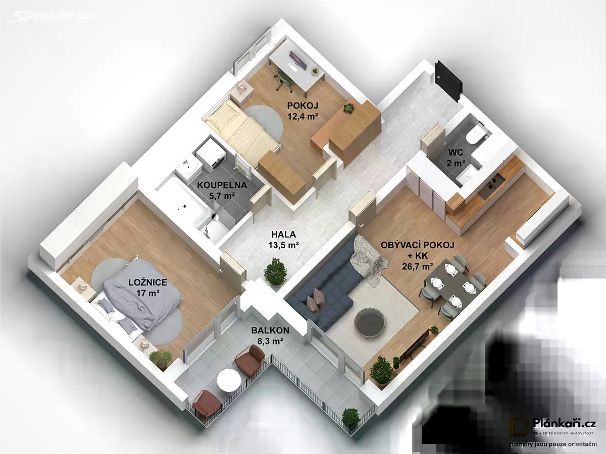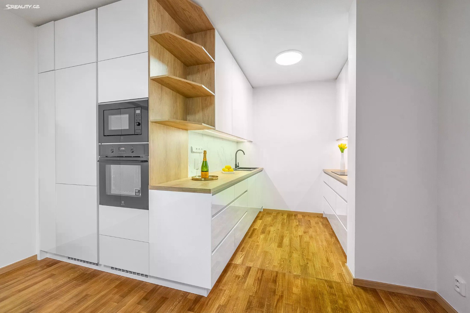 Nabízím kompletně zrekonstruovaný krásný byt 3+kk ve 4. patře novostavby s nádherným výhledem do zeleně a parkovacím místem včetně sklepa přímo v domě. Byt se nachází v krásném rezidenčním projektu, v oblasti Hostivařské přehrady obklopené parky, lesy a blízko zastávky tramvaje. Byt vypadá přesně jak vidíte na fotografiích, nejedná se o vizualizaci. Kuchyně na míru kompletně vybavená spotřebiči (elektrická trouba, mikrovlnná trouba, indukční deska, myčka), prostorná koupelna s vanou, se sprchovým koutem, s podlahovým topením, umyvadlem se skříňkou a prostor na pračku. Prostorná toaleta je zvlášť s umyvadlem a úložným prostorem. Předností bytu je nádherná dubová podlaha v ložnicích a obývacím pokoji, prošla kompletní renovací a je dominantou celého bytu. Byt je dispozičně velmi dobře řešený se dvěma neprůchozími prostornými ložnicemi z čehož jedna má výstup na terasu, obývacím pokojem s kuchyní, vstupní chodbou, prostornou koupelnou a samostatnou toaletou. K bytu náleží balkon/terasa s překrásným výhledem do vnitrobloku směrem k Hostivařské přehradě, prostorný sklep a parkovací místo v garážích. Moderní bytový dům se nachází v rezidenčním projektu Velenovského. Dispozice bytu 3+kk: - 2x plnohodnotná ložnice (17 m2 + 12,4 m2) - Obývací pokoj s kuchyňským koutem (27 m2) - Vstupní chodba (13,5 m2) - Koupelna (5,7 m2) - Toaleta (2 m2) - Balkon (8,3 m2) - Sklep (2,5 m2) - Parkovací stání v garážích domu V kompletní rekonstrukci bylo zahrnuto: - nová kuchyňská linka vyrobena na míru se spotřebiči (Electrolux elektrická trouba, myčka, indukční deska, mikrovlnná trouba, digestoř, LED osvětlení, dřez s odkapávačem) - nové osvětlení bytu - nové dveře - nivelace podlah a nová dlažba v chodbách a koupelně s toaletou - kompletní renovace dubových podlah - nová sanita (vana, sprchový kout, umyvadlo, skříňka, zrcadlo, toaleta s umyvadlem a skříňkou, žebřík) - příprava na pračku Co charakterizuje bytový dům: - Dům je velmi dobře spravován SVJ s velkým zaměřením na čisté, klidné a bezpečné bydlení. - SVJ dům udržuje v perfektní kondici. - Dům je krásně udržován vč garáží a sklepních prostor Budu se těšit na osobní schůzku při prohlídce tohoto krásného bytu. Případně neváhejte zavolat nebo napsat jakýkoliv doplňující dotaz. Prosím o kontaktování jenom přímé zájemce, a ne realitní kanceláře. Děkuji za respektování.