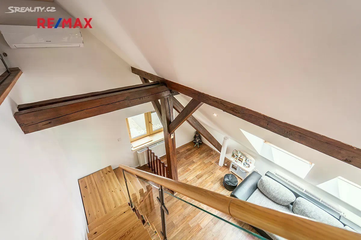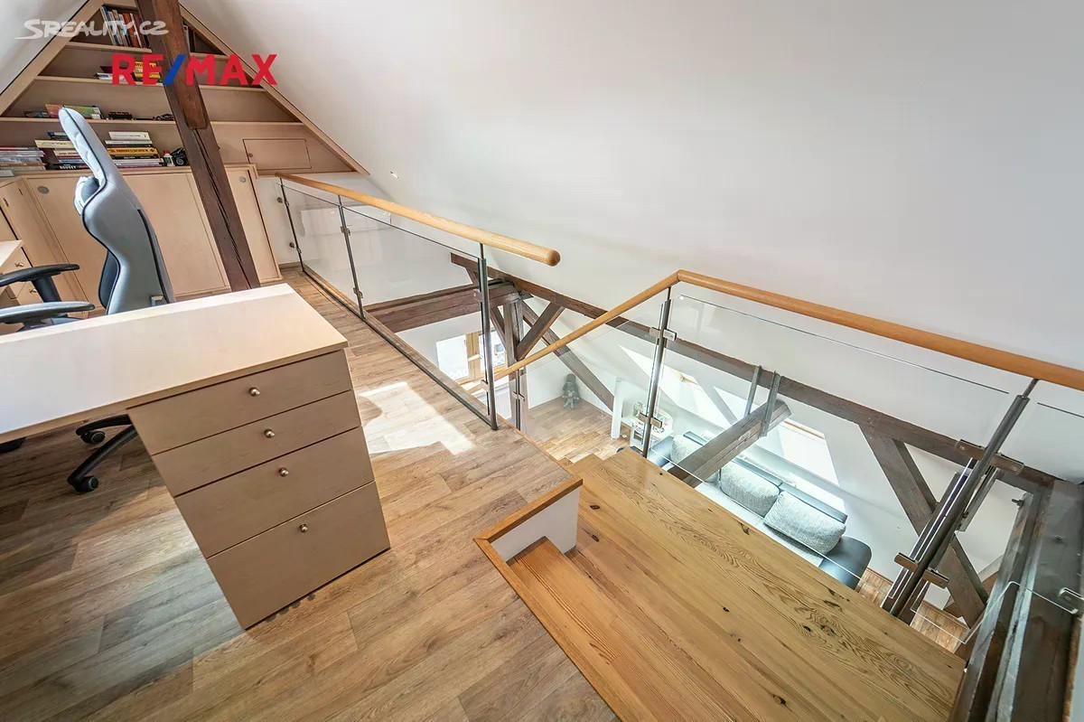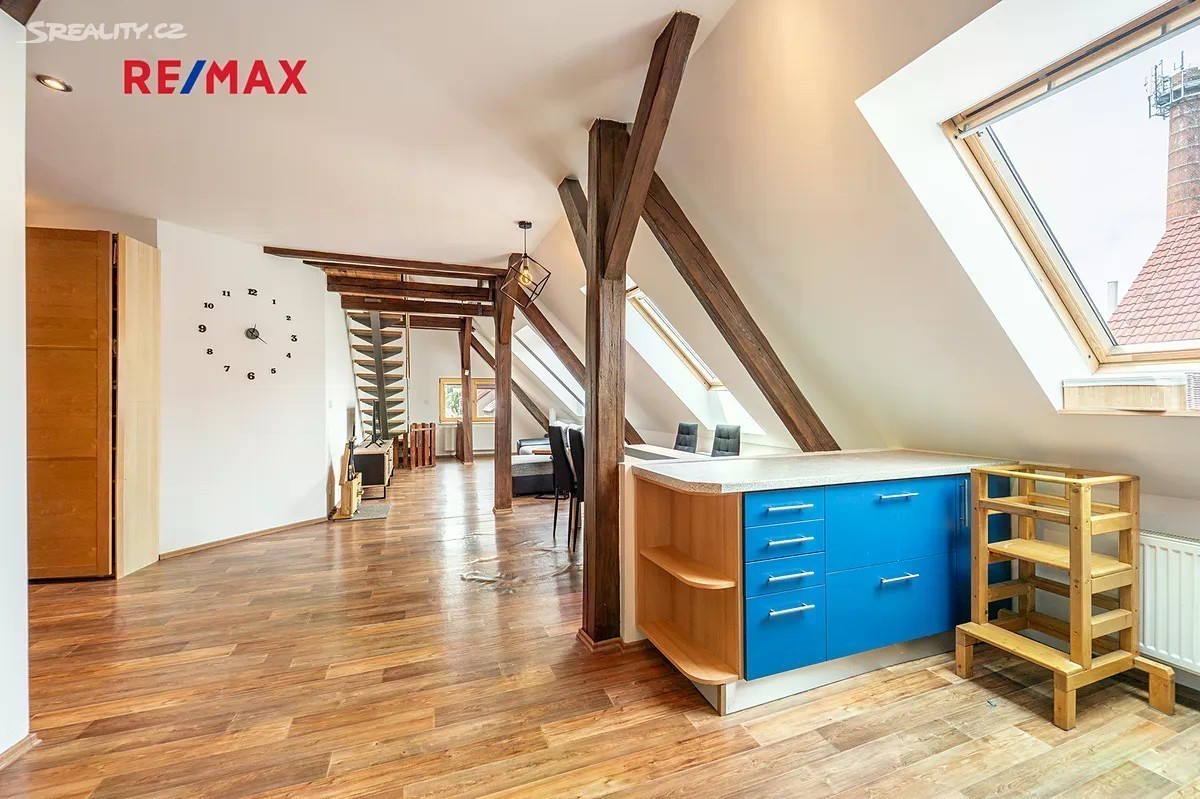 Ve výhradním zastoupení vlastníka si vám dovoluji nabídnout k pronájmu krásný půdní mezonetový byt v ulici Bezručova v Českém Brodě. Byt o dispozici 3 + kk (+ galerie/pracovna) je umístěn v 3. nadzemním podlaží cihlového domu bez výtahu. Oficiální výměra bytu je 86,5 m2, do které ale nejsou započítány plochy pod zkosením a celá galerie. Celková podlahová plocha je tedy 116 m2. V první úrovni bytu najdete předsíň, obývací pokoj s jídelnou a kuchyní, ložnici a koupelnu s vanou i sprchovým koutem. Po dřevěných schodech pak vejdete na galerii, která momentálně slouží jako pracovna. Vedle galerie je umístěna druhá ložnice s šatnou. Výhodou bytu jsou vestavěné skříně v předsíni, pracovně, šatně a bezpečnostní vstupní dveře. Jedinečnost a charakter bytu dodávají dřevěné trámy. Vytápění zajišťuje vlastní plynový kotel. V bytě je nainstalována klimatizace. Dům má nová plastová okna a novou střechu. K domu náleží vlastní uzavřená zahrada, kterou je možné využívat. V Českém Brodě je plná občanská vybavenost. Najdete zde školy, školky, kompletní síť obchodů a služeb. Český Brod má navíc vynikající dopravní dostupnost do Prahy (vlakem cca 30 minut do centra, autem cca 25 minut na Černý Most). Nájemné 20 000 Kč / měsíc Poplatky SVJ 1 177 Kč / měsíc Elektřina 1660 Kč / měsíc Plyn 1 450 Kč / měsíc Internet 300 Kč / měsíc Kauce 40 000 Kč Byt je ihned k dispozici. V případě zájmu o prohlídku mě kontaktujte na tel *********