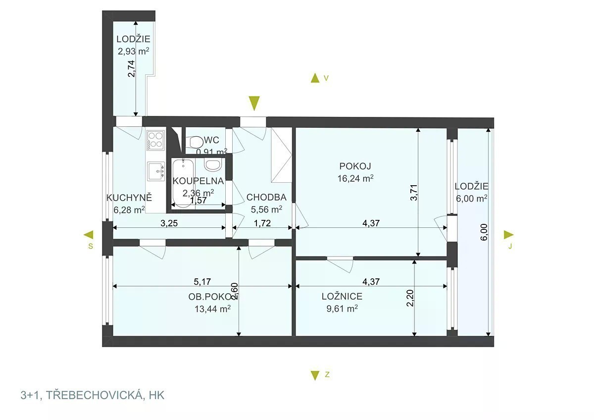 Pronájem bytu 3+1 63 m² Třebechovická, Hradec Králové - Slezské Předměstí