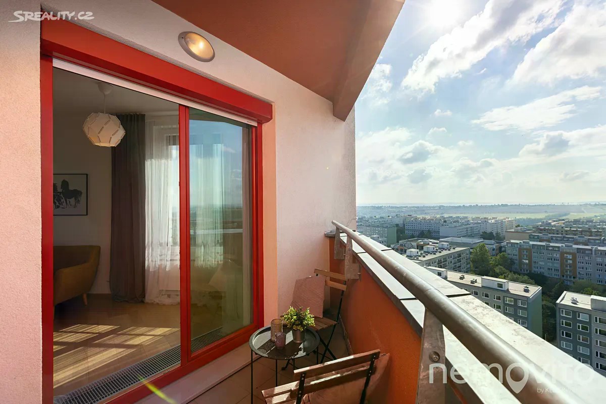 Byt s fantastickým výhledem na Prokopské údolí v sedmnáctém podlaží budovy Prague Towers. Velkorysá plocha 93 m2 (byt + sklep) je pro dispozici 3+kk skutečně neobvyklá, přičemž příslušenství doplňuje také balkon (4,9 m2, není započten do plochy), dvě garážová stání za sebou a u nich umístěný sklep (4,7 m2). Byl byl dokončen v roce 2011, nicméně do dnes byl užíván pouze dva roky, a je tak ve špičkovém stavu a prakticky bez známek používání. Proti původní dodávce developera byl byt vybaven nadstandardně - jiné podlahy, jiné provedení koupelny a WC. Zdaleka nejzajímavější je však to, co je umístěno za velkoformátovými okny (s roletami). Panoramatický výhled z východně položené věže projektu je skutečně působivý. Byt je umístěn v jižním cípu věže, je tedy příjemně světlý a působí velmi vzdušně. Obývák má 36 m2, okna kolem dokola, výstup na balkon a kuchyňský kout umístěný v opticky oddělené sekci. Ložnice jsou na opačných stranách bytu a jejich plocha je 17 a 12 m2. Nejsou tedy v kontaktu a jsou rozdělené prostornou chodbou, na které je samostatné WC s umyvadlem a koupelna s vanou. Naproti ní je pak ještě komora nebo šatna (4 m2). Chodba o velikosti 8 m2 umožňuje umístění dalších skříní, nicméně dostatek úložného prostoru řeší velký sklep. Ten je prakticky umístěný hnedka u dvojice stání, která k bytu náleží. Projekt spol. Centra Group je nepřehlédnutelný a umístěný na strategickém místě. Dvě zastávky BUS přímo u domu, na metro Lužiny 700 m a veškerá vybavenost v docházkové vzdálenosti. Na Prokopák je nejen výhled, ale jeho zelené plochy začínají hned na konci ulice Tlumačovská. Pokud vás o bytě zajímá více informací, rád vám pošlu odkaz na web s dalšími detaily. K dispozici okamžitě.