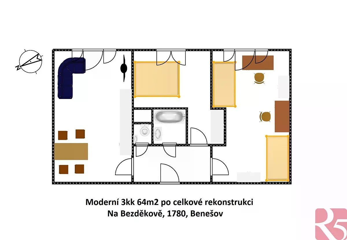Pronájem nového bytu 3kk 64m2, Benešov, ul. Na Bezděkově, se sklepem. Nový moderní byt s možností dlouholetého pronájmu u seriózního majitele. Dům s výtahem od vstupu přímo před byt. V bytě proběhla celková náročná rekonstrukce a modernizace díky které byt umožní bydlení jak rodině tak i mladým lidem. Použity sádrové stěrky, vinylová podlaha, okna s trojskly. Nové rozvody elektřiny, zavedena optická linka na rychlý internet, sítové rozvody do každé místnosti. Koupelna s vanou, umyvadlo se skříňkou, zrcadlová skříňka. Toaleta je samostatně, také s umyvadlem a bidetovou sprškou. V obývacím pokoji instalována kuchyňská linka IKEA, šedobílá s vestavěnou myčkou, troubou a indukční varnou deskou na 400V umožní komfortní rychlé ekonomické vaření. Vedle kuchyňské linky místo na volně stojící lednici. Ložnice s výklenkem na šatní skříň a prostorný druhý (dětský) pokoj. Světlé prosklené dveře v dekoru dub. V ložnici nově vestavěná šatní skříň. K bytu náleží sklep v přízemí domu. Zde i kolárna a kočárkárna. Samozřejmostí je bezbariérový výtah ve vstupu z výstupem na patře bytu. Doporučuji náročným zájemcům, kteří budou mít nový byt ve kterém si vybudují svůj domov. Prohlídky možné již nyní. Pro domluvení prohlídky a více informací volejte makléře.