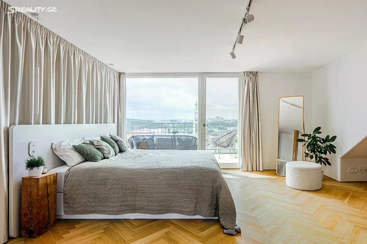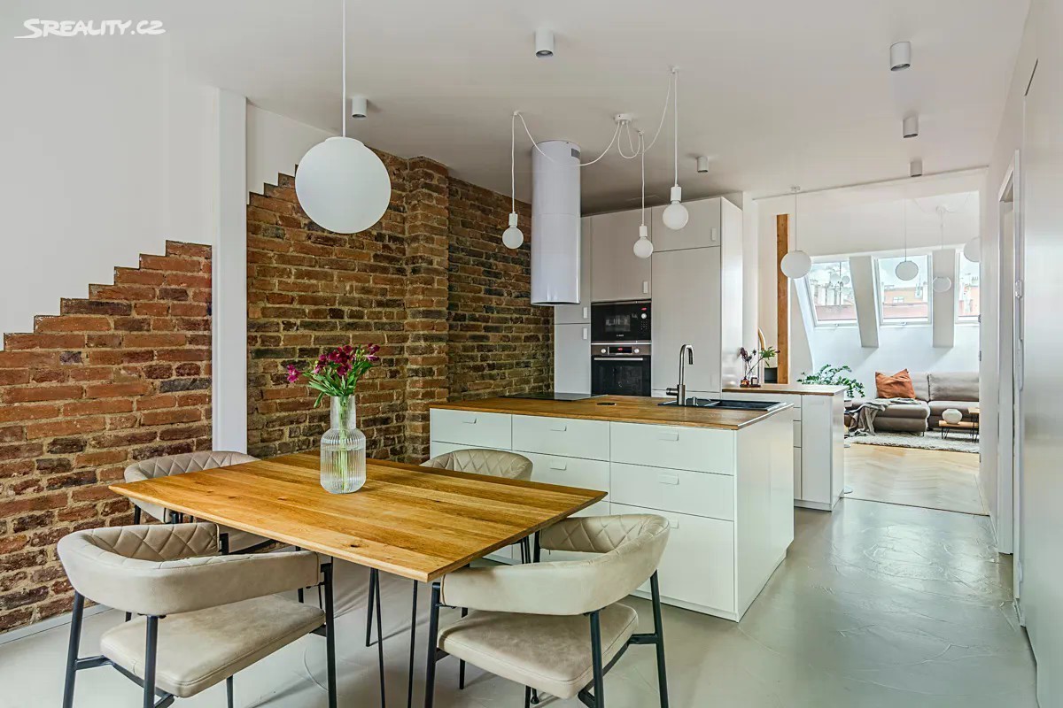 K dlouhodobému pronájmu nabízíme světlý, vzdušný a nadstandardně vybavený mezonetový byt o výměře 89 m² s terasou (10 m²) a balkonem (3 m²). Byt se nachází v 6. a 7. patře kompletně rekonstruované budovy s výtahem, na lukrativní adrese - v Kodaňské ulici, v srdci Vršovic. Tento velkorysý, klimatizovaný mezonet nabízí příjemně členěný prostor ve dvou podlažích: spodní patro tvoří vstupní chodba s úložnými prostory, koupelna se sprchovým koutem a samostatná toaleta. Dále zde najdete otevřený obývací prostor s pracovním koutem, a jídelnu s kuchyňskou částí, odkud je přímý vstup na balkon. Dominantou prostoru je jídelní stůl z masivního dřeva a kuchyň s centrálním ostrůvkem, vybavená kvalitními spotřebiči - lednicí s mrazničkou, myčkou, horkovzdušnou i mikrovlnnou troubou, indukční varnou deskou a ostrůvkovou digestoří. Samozřejmostí je také technická skříň, která skýtá pračku se sušičkou. Horní patro nabízí prostornou ložnici s walk-in šatnou, samostatnou toaletu a vstup na jižně orientovanou terasu s jedinečným výhledem na město. K bytu je možno zajistit parkovací stání v nedalekém okolí. Po domluvě je možné zajistit také sklep. Nově vybudovaný půdní byt vyniká čistým architektonickým řešením s důrazem na zachování původních materiálů (cihlové zdi, kartáčované dřevěné trámy) a poctivým zpracováním vestavného nábytku na míru. Použité materiály podtrhují vysoký standard bytu - vícevrstvé dubové parkety, bezfalcové dveře, baterie Grohe, schodiště JAP a další kvalitní prvky. Byt poskytuje komfort moderního bydlení v podobě podlahového vytápění, elektrických venkovních žaluzií, klimatizace a optického připojení k internetu. Vytápění i ohřev vody zajišťuje nový plynový kotel. Díky kvalitnímu provedení nástavby se můžete těšit na nízké provozní náklady. Zpracování bytu uspokojí i nejnáročnější klienty a nabídne vysoký standard a komfort současného městského bydlení na výjimečné adrese. Lokalita na pomezí oblíbených čtvrtí Vinohrady a Vršovice nabízí kompletní občanskou vybavenost, vynikající dopravní dostupnost a živou atmosféru plnou zeleně, kaváren a bister. V okolí najdete například Heroldovy sady, množství vzrostlých stromů i oblíbené podniky. Dům je vzdálen jen pár minut chůze od zastávky Čechovo náměstí. Byt se pronajímá kompletně zařízený a bude k dispozici od 1. 1. 2026. Pokud se v takovém bytě vidíte, ráda Vás uvidím na prohlídce.