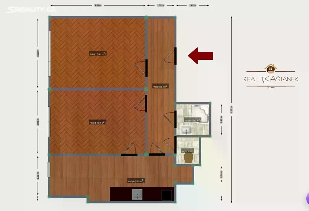 Kompletně zrekonstruovaný byt 2+1 v centru města, ul. Pražská, Liberec. TECHNICKÉ ATRIBUTY: VIDEOPROHLÍDKA | 55 m2| 2 pokoje + kuchyň | 4. P | PŘÍSLUŠENSTVÍ | VYBAVENÍ: Vybavení: nová plastová okna - dvousklo, parkety, nové vinylové podlahy, parkety. Kuchyň: nová kuchyňská linka, sklokeramická varná deska + horkovzdušná trouba, digestoř. Koupelna po vkusné rekonstrukci - sprchový kout, topný žebříček, umyvadlo, zrcadlová skříňka, přípojka na pračku. Samostatné wc. Jednotka vytápěna vlastním plynovým kotlem - náklady pod kontrolou. Nábytkem nevybaveno. INFORMACE K DOMU | NEMOVITOSTI | ZAHRADĚ: Cihlová zástavba, nemovitost se nachází v samém centru města. Pražská ulice je hlavní pěší zónou Liberce. Nespornou výhodou je dostupnost všech služeb v docházkové vzdálenosti: nákupní galerie, restaurace, kavárny, pošta, divadlo či nemocnice. Volné IHNED. CENA: Nájemné: 16.000,- Kč. Služby: 1.500,- Kč/2 osoby + el. a plyn na nájemníka. Jistota: 30.000,- Kč + provize RK. DOPOORUČENÍ PRO SJEDNÁNÍ PROHLÍDKY: Do e-mailu adresovanému RK napište Vaše jméno, telefon a e-mailový kontakt. Nezapomeňte na identifikaci nemovitosti - adresa popř. číslo zakázky. S termínem prohlídky se Vám co nejdříve ozveme.