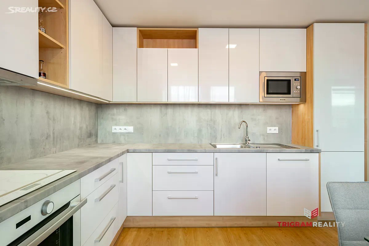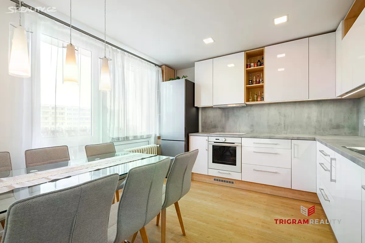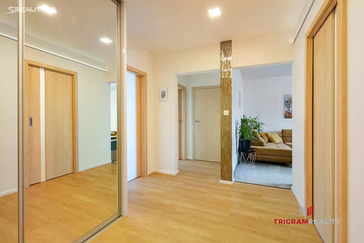 Zprostředkujeme prodej moderně zrekonstruovaného bytu 3+1 o velikosti 84,36 m² se čtyřmi lodžiemi. Byt je umístěn v 9. patře částečně zrevitalizovaného panelového domu na třídě Edvarda Beneše, v klidné části Moravského Předměstí. Orientace do dvou světových stran zajišťuje velmi dobré osvětlení a snadné větrání. Z dětského pokoje a ložnice se otevírá výhled do parku. Rekonstrukce a vybavení bytu Byt prošel v roce 2020 kompletní a rozsáhlou rekonstrukcí s nadstandardními prvky. Jádro bylo vyzděno z pórobetonu, původní kovové zárubně byly vyřezány a průchody mezi místnostmi rozšířeny. Realizovány byly kompletně nové rozvody elektřiny, vody i odpadů, celoplošné vystěrkování podlah do jedné roviny s následnou kombinací vinylové podlahy a koberce. V kuchyni a chodbě jsou instalovány SDK podhledy s vestavěným LED osvětlením a světelnými pásky. Interiér doplňují tři bezfalcové dveře se skrytými panty, dvě posuvné dveře do pouzdra a bezpečnostní vstupní dveře. Vybavení v ceně Veškeré současné vybavení bytu je zahrnuto v ceně: kompletní kuchyňská linka na míru se spotřebiči a lednicí, obývací pokoj vybavený nábytkem včetně nástěnné LED TV LG 75" a rozkládací sedací soupravy do U, ložnice s americkou postelí typu boxspring, žáruvzdorným trezorem a elektrickou předokenní roletou. Dům a společenství Dům je průběžně modernizován a je bez zadlužení. V roce 2025 byla na střeše instalována fotovoltaická elektrárna s bateriovým úložištěm (v letních měsících zajišťuje soběstačnost až 95 % spotřeby elektřiny), zároveň byly v roce 2025 vyměněny vodoměry a čidla topení s dálkovým odečtem a provedeny výměny stoupaček. Část domu byla zateplena v roce 2024 (štíty a krajní sekce). Dále dům disponuje kamerovým systémem ve společných prostorách a vysokorychlostním optickým internetem. K bytu náleží sklepní kóje v suterénu a sdílená komora na patře. V domě je také kolárna a vstup je řešen čipovým systémem. Veřejné parkování u domu nebo na pronajatých místech. Bytový dům má kladné hospodaření a vytváří stabilní rezervy. O konkrétních číslech vás rád informuji osobně. Měsíční poplatky činí přibližně 5 500 Kč. Vytápění a ohřev vody je dálkové. Byt představuje atraktivní volbu jak pro komfortní rodinné bydlení, tak jako investiční příležitost v jedné z nejžádanějších částí Hradce Králové. V těsné blízkosti najdete supermarkety (Billa, Albert), OC Futurum, dětská hřiště, školky, školy, polikliniku, lékárny a zastávky MHD. Vše na dosah několika minut chůze. Doporučuji osobní prohlídku, při které naplno oceníte kvalitu provedení i příjemnou atmosféru bytu.