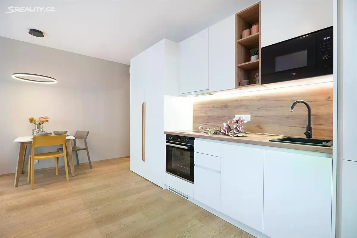 Nabízíme k pronájmu kompletně vybavený byt o dispozici 1+KK s výměrou 36 m2 v 8.NP v 11patrovém bytovém domě LOOX přímo u metra Prosek. Dům představuje moderní bydlení v ideální lokalitě, odkud je vše doslova na dosah, a přesto se jedná o klidné bydlení, s rozlehlým parkem Přátelství přímo v sousedství. Popis bytu: U vstupu do bytu se nachází předsíň s botníkem, šatní skříní s věšáky. Byt je vybaven klimatizací, vestavěnými skříněmi, kuchyňskou linkou s vestavěnými spotřebiči a kuchyňským inventáře (mikrovlnná trouba, lednice, myčka, indukční varná deska, horkovzdušná trouba, nádobí, příbory atd.), jídelním stolem, židlemi, sedačkou, konferenčním stolem, komodou a SMART televizí. V pokoji se nachází dvoulůžková postel s matracemi, noční stolky a vestavěná skříň. V koupelně se nachází sprchový kout a pračka se sušičkou. Byt je také vybaven mopem, vysavačem, žehlícím prknem a žehličkou, na oknech jsou instalovány žaluzie a záclony. K bytu je možné si pronajmout garážové stání za 2000 CZK nebo zakladač za 1000 CZK. Sklepní kóji po domluvě. Vratná kauce činí 30.000 Kč. Zprostředkovatel požaduje provizi ve výši 50 % měsíčního nájmu bez poplatků. K nastěhování od 10.11.2025. Smlouva minimálně na 1 rok. Projekt LOOX nabízí dispozice 1+kk až 4+kk. Většina bytů v projektu disponuje balkónem nebo terasou. Výhodou projektu LOOX je použití moderních materiálů a technologií, výsledkem čehož je nízká energetická náročnost, kdy dům splňuje kategorii „B“ v rámci hodnocení PENB, čímž je dosaženo minimalizace nákladů za vytápění a chlazení a zároveň vysokého stupně pocitu soukromí v interiéru. Okolí disponuje kompletní občanskou vybaveností, včetně supermarketu Billa, najdeme zde i sportovní hřiště a cyklostezky a známou bobovou dráhu Prosek. V přízemí domu je i několik obchodních jednotek, které dále rozšiřují rozsah služeb pro nájemce.