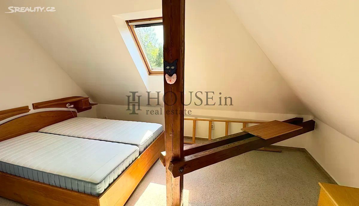 Nabídka K pronájmu nabízíme kompletně vybavený, velmi pěkný rodinný dům o podlahové ploše 257,5 m² s dispozicí 5+1, garáží pro dva automobily a zahradou o výměře 512 m². Dům má dvě nadzemní podlaží, obytné podkroví a jedno podzemní podlaží. Nachází se v klidné vilové zástavbě v ulici Nad Havlem, Praha 4 - Krč, jen pár minut chůze od vlakového nádraží Praha-Krč a zastávky autobusu Višňová. Dispozice domu • 1. NP - vstupní chodba, hala, schodiště • 2. NP - kuchyň s kuchyňskou linkou, obývací pokoj, jídelna, chodba, koupelna, toaleta • Podkroví - pracovna, 2 ložnice, hala, koupelna, sklad, půda • 1. PP - pokoj pro hosty (postel, stůl, 2 židle), sprchový kout, toaleta, sklep, sklad Vybavení Kuchyňská linka je vybavena elektrickým sporákem s troubou, digestoří, lednicí s mrazákem a přípravou pro myčku. V obývací části je otevřený krb na dřevo, kterým lze pohodlně vytopit celé patro. V domě zůstává veškerý masivní nábytek, jak je uvedeno na fotografiích. Obrazy a osobní věci budou odstraněny. O vytápění a ohřev vody se stará plynový kotel s rozvodem do radiátorů. Podlahy tvoří kombinace dřevěných parket, dlažby a koberce - majitel aktuálně v několika místnostech pokládá nové dřevěné podlahy. Garáž a zahrada Součástí domu je prostorná garáž (30 m²) pro dva automobily a možnost parkování dalších dvou vozů na pozemku. K dispozici je rovinná, udržovaná zahrada se vrostlými stromy o rozloze 512 m² s přímým vstupem z haly v přízemí - ideální pro relaxaci či rodinné posezení. Lokalita a vybavenost Dům se nachází v příjemné, tiché lokalitě obklopené rodinnými domy a vilami, v blízkosti Michelského a Kunratického lesa, které nabízejí skvělé možnosti pro procházky, běh či cyklistiku. V pěší vzdálenosti je zastávka Višňová (autobus 193) s přímým spojením na metro C - Budějovická, kde se nachází veškerá občanská vybavenost - obchody, restaurace, pošta, školy, školky i poliklinika. Podmínky pronájmu Provize pro realitní kancelář: 58.000 Kč Vratná kauce: 1 měsíční nájem Dům je vhodný pro rodinu nebo pár. Volné ihned. V případě zájmu volejte, pište email, případně sms. Večer a o víkendu nebo při aktuální nedostupnosti telefonu prosím pište email nebo sms.