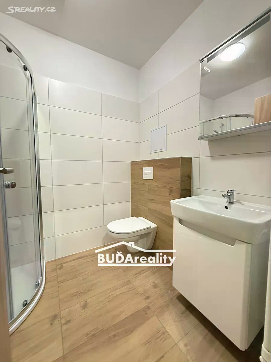 Dovoluji si Vám nabídnout k pronájmu moderní cihlový byt 2+kk, který se nachází v novém bytovém domě“ Rezidence Havlíčkova“ s možností vyhrazeného parkovacího stání v centru Otrokovic. V blízkém okolí najdete veškeré občanské vybavení a úřady pro veřejnost, které jsou v příjemné docházkové vzdálenosti. Jistě oceníte pohodlí dopravní obslužnosti - MHD, místní, národní i mezinárodní vlaky a dálnice D55. Nedávno kolaudovaný dům o 2 podlažích má rezidenční charakter. Za příplatek si můžete zajistit 1 nebo i více parkovacích míst, která jsou zabezpečena kamerovým systémem. V nízkopodlažním domě se nachází 6 bytových jednotek se sklepními kójemi a 1 nebytový prostor. Dům vytápí moderní kondenzační kotel, který v kombinaci s podlahovým topením vytváří příjemné teplo a zároveň i zásadní energetickou úspornost. Úklid společných vnitřních prostor má na starosti úklidová služba. Bytová jednotka v 1. NP o celkové ploše 44 m2 se skládá: z předsíně, koupelny s toaletou, obývacího pokoje s kuchyní, ložnice a sklepní kóje. V koupelně je použita atraktivní velkoformátová dlažba s obkladem a je vybavena sprchovým koutem, umyvadlem se zrcadlovou skříňkou, toaletou a otopným el. žebříkem s vlastním termostatem. Prostorným dojmem působí obývací pokoj s kuchyňským koutem. Bydlení Vám zpříjemní na míru vyrobená kuchyňská linka se zabudovanými spotřebiči: elektrická trouba,indukční sklokeramická deska a digestoř. Atraktivním prvkem interiéru jsou designově a barevně ladící dveře s moderně působící vinylovou podlahou. V celém bytě Vás zahřeje podlahové topení, které si můžete regulovat termostatem v každé místnosti. Okna se zatemňují venkovními žaluziemi ovládanými spínačem. K bytu náleží prostorná sklepní kóje o výměře 4 m2, která je umístěná v přízemí domu. Kauce k bytu činí - 25.000,- Kč Provize makléře činí - 14.500,- Kč Pronájem této bytové jednotky Vám poskytne radost z bydlení, soukromí a pocit bezpečí v srdci Otrokovic a je vhodná pro 1-2osoby. V případě zájmu o prohlídku, mě neváhejte kontaktovat.