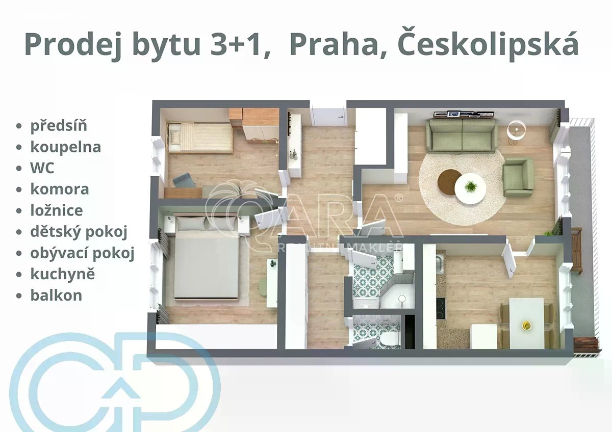 Hledáte byt s výborným potenciálem v oblíbené pražské lokalitě? Pak vás jistě zaujme tento světlý a dispozičně velmi dobře řešený byt 3+1 o výměře 52,6 m² + 6 m² lodžie a 2 m² komora, který se nachází v 1. patře klasického panelového domu na ulici Českolipská, Praha 9 - Střížkov. Byt je v původním stavu, a tak představuje ideální příležitost k rekonstrukci přesně podle vašich představ. Dispozice je promyšlená do posledního detailu - žádná zbytečná zákoutí, jen efektivní a účelné uspořádání. Byt má okna orientována na jihovýchod a severozápad, díky čemuž je příjemně prosvětlený po celý den. K relaxaci poslouží balkon s výhledem do zeleně, kde si můžete v klidu vychutnat svou ranní kávu. Velkou výhodou je prostorná komora umístěná naproti bytu, která nabízí dostatek úložného prostoru - praktické a bezpečné řešení, které často potěší více než klasický sklep. Bytový dům je napojen na dálkové vytápění, tudíž zde budete mít komfortní žití po celý rok. Lokalita, kde se dobře žije: Střížkov patří mezi nejžádanější čtvrti Prahy 9 - klidná rezidenční oblast s bohatou občanskou vybaveností, množstvím zeleně a skvělou dopravní dostupností do centra. V bezprostředním okolí naleznete: - Stanici metra C - Prosek (cca 5 minut chůze) - Autobusové zastávky s přímými spoji do různých částí města - Mateřské a základní školy, gymnázium i dětská hřiště - Obchodní centra Prosek a Letňany, supermarkety Billa, Penny, Lidl - Polikliniku Prosek, lékárny, poštu, kavárny a restaurace - Park Přátelství, ideální pro procházky, běhání i odpočinek Lokalita zkrátka spojuje městský komfort s příjemnou atmosférou plnou zeleně a je ideální volbou pro rodiny, páry i investory. Přijďte se přesvědčit osobně - rád vás bytem provedu a třeba se stane zrovna Vaším domovem.