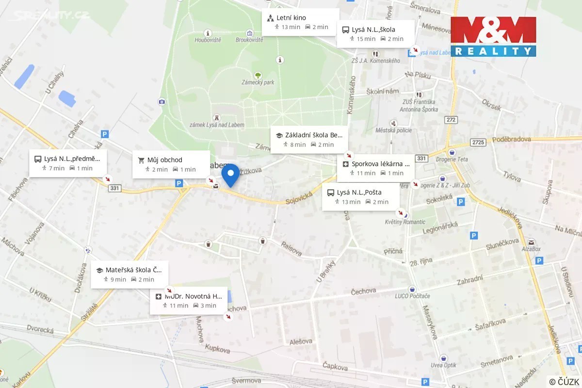Poloha na mapě, užitečná místa a trasy