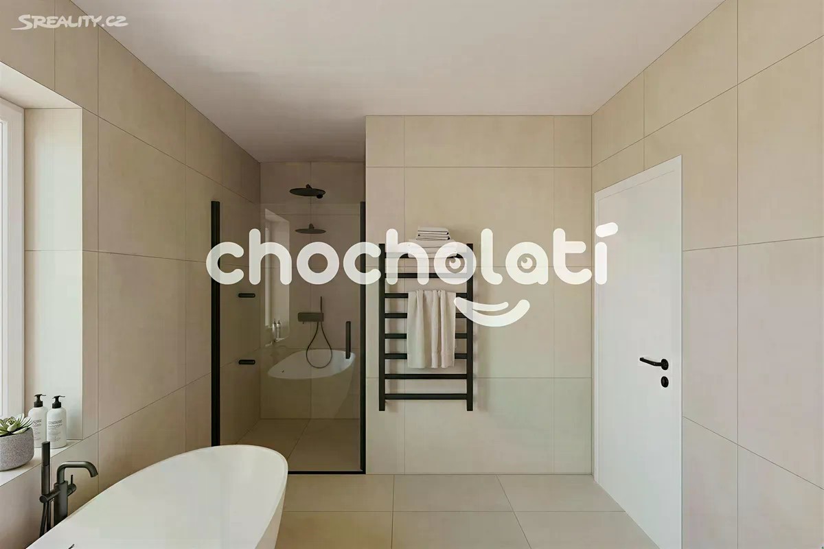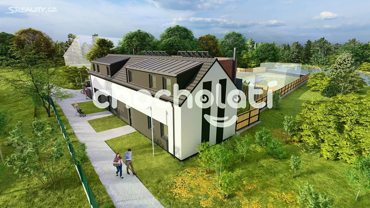 Exkluzivně nabízíme novostavbu luxusního bytu 3+kk, o celkové ploše 157 m2, ve vyhledávané lokalitě Pardubice - Rosice. Podlahová plocha bytu: 80 m2 (vysoká úroveň standardů). Oplocená zahrada s terasou: 72 m2 Venkovní sklad s přípravou na nabíjení elektroauta: 4 m2 Vlastní parkovací plocha 42 m2 přímo u zahrady, která umožní parkování pro 2 automobily. Byt je součástí unikátního projektu Viladům Rosice s termínem dokončení 12/2025. V domě jsou pouze 4 jednotky, a to o dispozici 3+kk. Dvě jednotky jsou v přízemí se zahrádkou a dvě v patře s terasou. Dům má dva samostatné vchody, v každém vchodu jsou dva byty. Příjezdová komunikace k domu slouží pouze pro majitele bytů a přilehlého rodinného domu. Dům je v uzavřeném areálu za uzamykatelnou bránou. V domě bude instalována příprava na fotovoltaickou elektrárnu. Tento byt (označovaný jako "A") má vlastní zahrádku, do které je možné vstoupit francouzským oknem, a to ze všech obytných místností. Druhý vstup je z parkoviště. Byt je o dispozici 3+kk a nabízí prostorný obývací pokoj s kuchyní, ložnici a dětský pokoj. Velkorysá koupelna je s vanou a sprchovým koutem. WC je samostatné, s umyvadlem. V bytě naleznete technickou místnost, do které umístíte pračku, sušičku a technologické zázemí. Byt je vytápěn tepelným čerpadlem, topení je řešeno jako podlahové. V obývacím pokoji je příprava na krbová kamna (krb). Samozřejmostí je příprava na předokenní žaluzie. Standardy: Velkoformátová dlažba, dubové podlahy, volně stojící designová vana, baterie Hansgrohe, bezfalcové dveře. K bytu náleží parkovací plocha za cenu 700.000 Kč a venkovní sklad za cenu 150.000 Kč. Celková cena bytu včetně parkování a venkovního skladu činí 11.350.000 Kč. Krásný byt, v úžasném místě, s vysokým standardem bydlení.