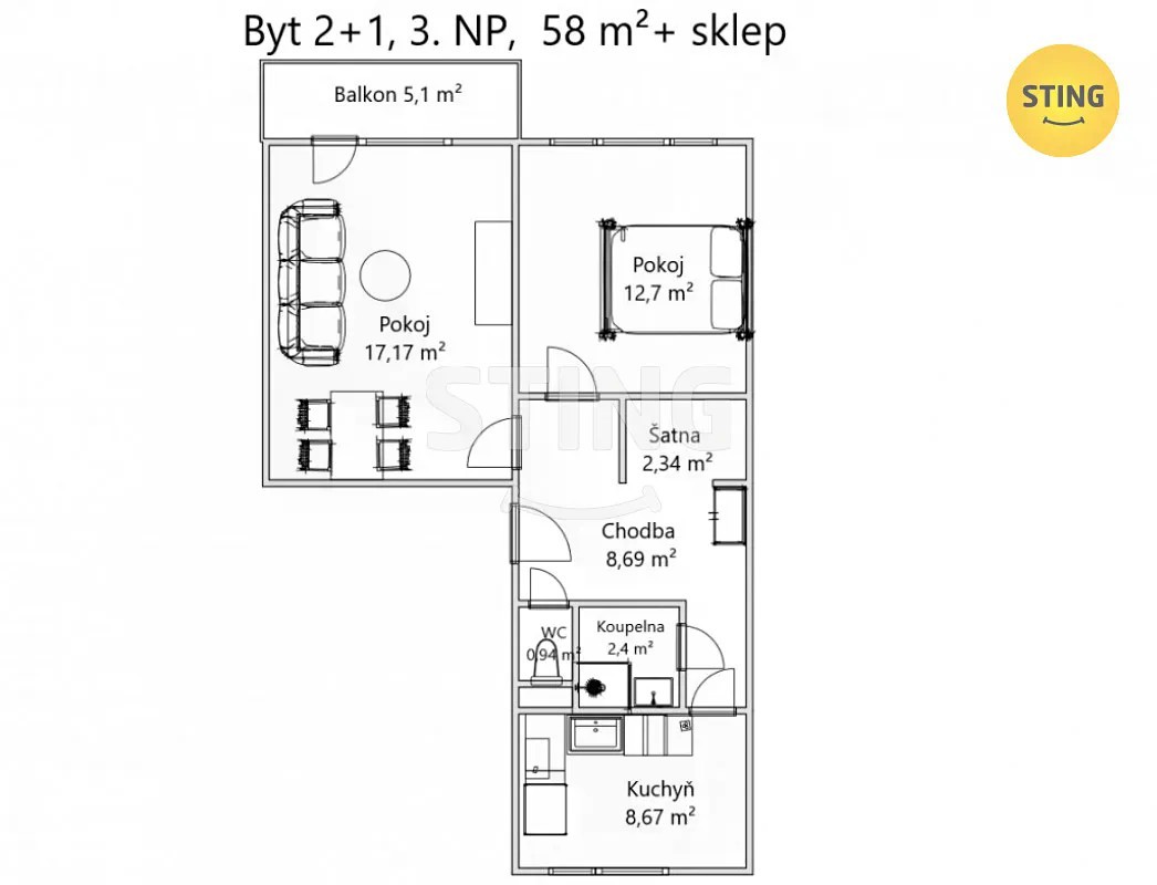 Nabízíme ke koupi příjemný byt 2+1 o podlahové ploše 53 m² s balkonem (5 m²), umístěný ve 3. patře revitalizovaného domu bez výtahu v žádané lokalitě Otrokovice - ulice Havlíčkova. K bytu náleží také sklep (3,57 m²). Byt se nachází v udržovaném stavu, což dává skvělou příležitost k případné úpravě dle vlastních představ. Dispozice je velmi praktická - prostorná vstupní chodba s komorou, samostatná kuchyň, obývací pokoj se vstupem na balkon, ložnice (tyto pokoje jsou orientovány do zeleně za domem), koupelna se sprchovým koutem a oddělené WC. Dům je kompletně zrevitalizován a zateplen, byly renovovány balkony a vyměněna plastová okna jak v bytech, tak i ve společných prostorách. Podlahy tvoří parkety, PVC a dlažba, dveře jsou v ocelových zárubních (plné i prosklené). Tento byt může být skvělým startem pro mladý pár, jednotlivce či jako investice na pronájem. Lokalita nabízí klidné bydlení s výbornou občanskou vybaveností - v pěší vzdálenosti najdete obchody, školu, školku, zastávku MHD i vlakové nádraží. Parkování je možné přímo u domu. Neváhejte nás kontaktovat pro více informací nebo domluvu osobní prohlídky. V případě více zájemců si majitel vyhrazuje právo prodat nejvýhodnější nabídce. Do konce listopadu 2025 nabízíme prostřednictvím našeho partnera úrokové sazby od 4,29 % p.a. Více informací Vám sdělí náš specialista na prohlídce.