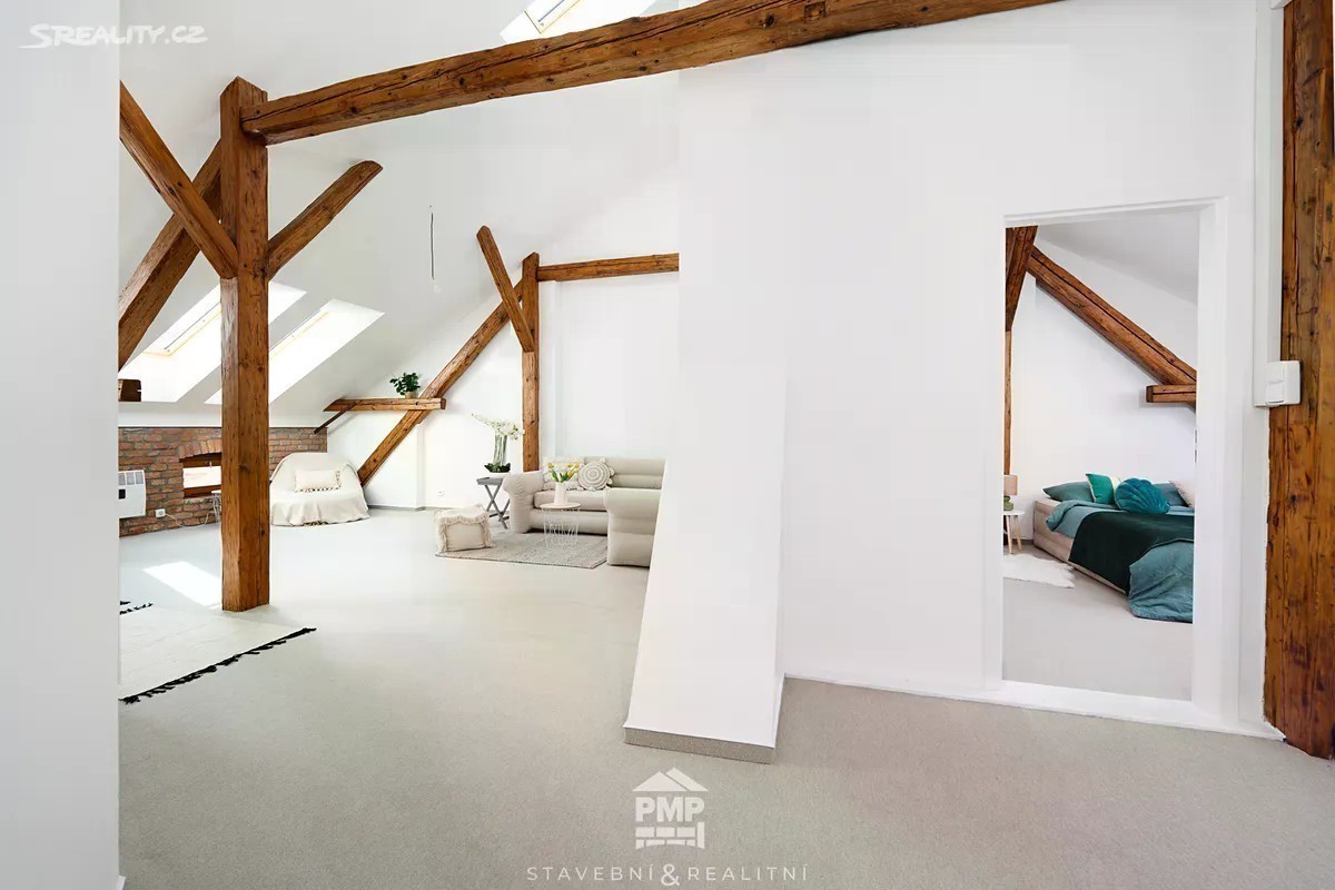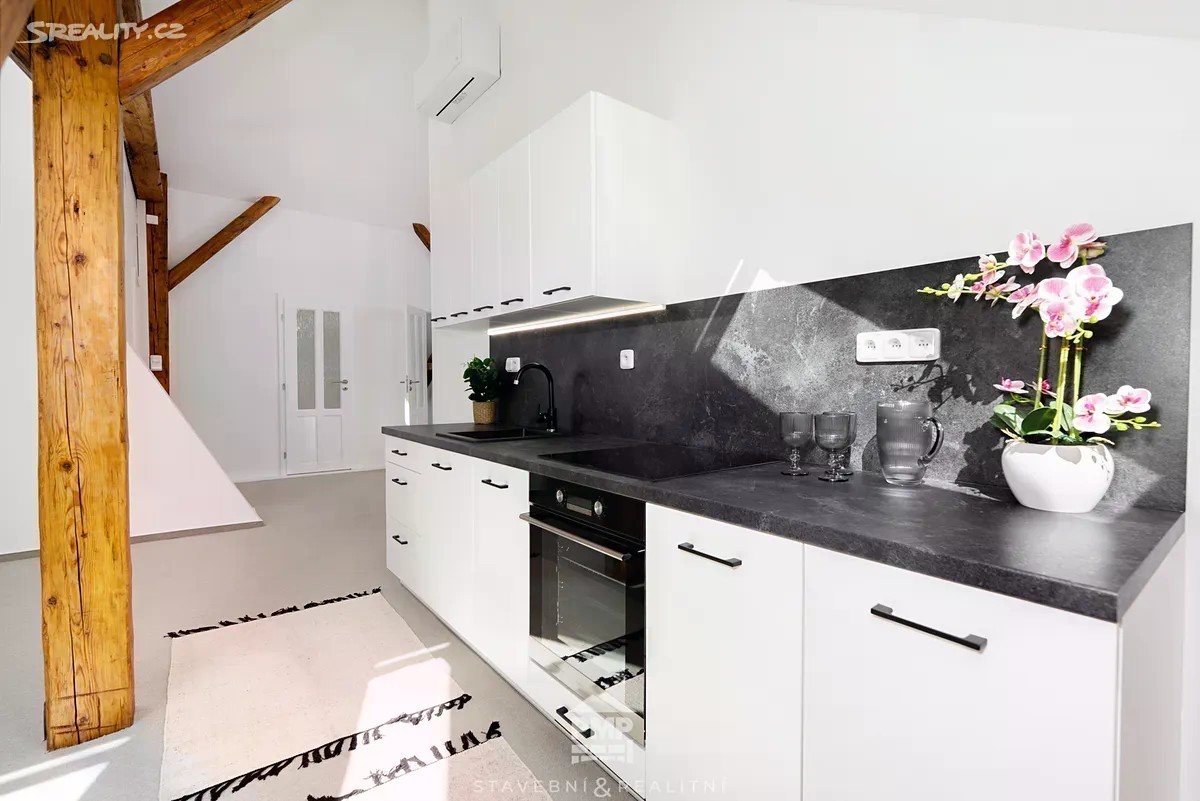 Nabízíme Vám k pronájmu zrekonstruovanou bytovou jednotku v ulici Havlíčkova. Podkrovní byt o dispozici 2+kk se nachází ve 4. NP bytového domu v památkové zóně města Znojma. Celková užitná plocha bytu činí 69 m². Byt nabízí dostatek prostoru jak pro jednotlivce, mladý pár, tak i pro rodinu. Vysoké stropy dodávají pocit vzdušnosti a prostoru, přiznané trámy a cihly zase pocit útulnosti. Byt je vybaven novou moderní kuchyňskou linkou s vestavěnou troubou a varnou deskou. V koupelně se nachází sprchový kout, umyvadlo, toaleta a prostor k umístění pračky. Prostorná ložnice je orientována do klidného vnitrobloku. Vytápění je v tomto bytě řešené prostřednictvím elektrických přímotopů. Výhodou jsou také dvě klimatizační jednotky, které ochlazují v horkých letních dnech a přitápí v zimě. Energetická náročnost budovy: třída D. Výměry místností: předsíň - 8,80 m², obývací pokoj + kk - 31 m², ložnice - 18,20 m², koupelna - 6,20 m², šatna - 4,80 m². Nájemné činí 12.000,- Kč měsíčně + náklady na energie 3.800,- Kč (záloha na elektřinu - 3.000,- Kč, záloha na vodné/stočné - 800,- Kč). Vratná kauce činí 30.000,- Kč + provize RK. Znojmo je moravské město v okrese Znojmo a obec s rozšířenou působností v Jihomoravském kraji na levém břehu řeky Dyje. Je druhým největším městem Jihomoravského kraje a historickým centrem jihozápadní Moravy. Město s královskou pověstí a impozantní polohou je zároveň centrem Znojemské vinařské podoblasti. Historické jádro s četnými kostely si zachovalo renesanční styl - je plné křivolakých uliček, romantických vyhlídek a půvabných zákoutí.