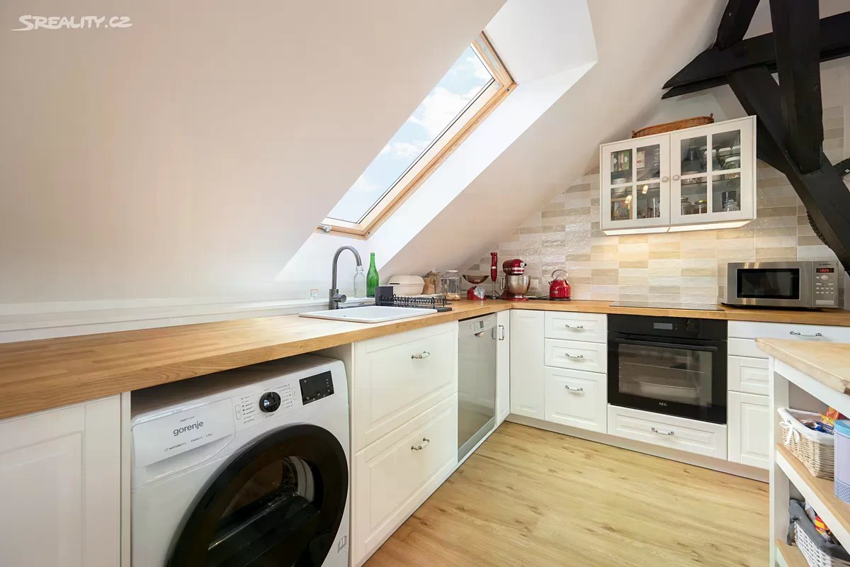 Ke koupi nabízíme velký vzdušný podkrovní byt v centru Kuřimi, přímo na náměstí Osvobození s krásnými výhledy do okolních lesů. Byt má dispozici 3+kk, podlahovou plochu 91 m2 a náleží k němu sklep. Je umístěn na 4. podlaží cihlového domu ve střešní nástavbě. Předmětem prodeje není nábytek, vyjma kuchyňské linky. Vytápění bytu a ohřev vody je realizováno samostatným plynovým kondenzačním kotlem. Tento systém vytápění je úsporný s absolutní možností kontroly vynaložených nákladů. Hlavními designovými prvky v interiéru jsou krásné dřevěné nosné trámy. Vstupní chodba bytu je ozvláštněna krátkým schodištěm. Celý prostor je chodby působí velmi vzdušně a světle. V bytě je spousta úložných prostor a vestavěných skříní. Dominantním prostorem je obývací pokoj s kuchyní ve tvaru L. Světlo přináší velkoformátové okno s výhledem do krajiny a také na nově rekonstruované náměstí a klidného vnitrobloku. V chodbě je prostorná koupelna s vanou a sprchovým koutem, je zde i místo na pračku. Toaleta je samostatná. V roce 2018 proběhla kompletní rekonstrukce střechy a oken (Velux, trojskla). Energetická třída F. Celkové náklady na bydlení: cca 7.000,- Kč / měsíc (včetně TV, internetu a všech záloh a plateb do SVJ. Okolí bytu přináší benefity bydlení v krásném centru dynamicky se rozvíjejícího města, ale zároveň uprostřed krásné přírody. Ve vnitrobloku domů s parkovou úpravou je klidné dětské hřiště a spousta odpočinkových zón. V docházkové vzdálenosti jsou sportoviště (aquapark, sportovní hala), obchody, restaurace i knihovna. Kuřim je úzce spojena s jihomoravskou metropolí (15 minut autem i vlakem), zároveň je však svébytným plně občansky vybaveným městem. V případě zájmu vás rádi uvítáme na osobní prohlídce. Jsme připraveni poskytnout stoprocentní péči i v případě nutnosti financovat nemovitost pomocí hypotéčního úvěru. Uvedené výměry jsou orientační. V případě více zájemců bude nemovitost prodána nejlepší nabídce. Majitel si vyhrazuje právo vybrat kupujícího na základě jím zvolených kritérií. Veškeré zveřejněné údaje obsažené v tomto inzerátu mají pouze informativní charakter a nejsou nabídkou ve smyslu §1731nebo§1732 občanského zákoníku, ani se nejedná o veřejný příslib dle §1733 občanského zákoníku.