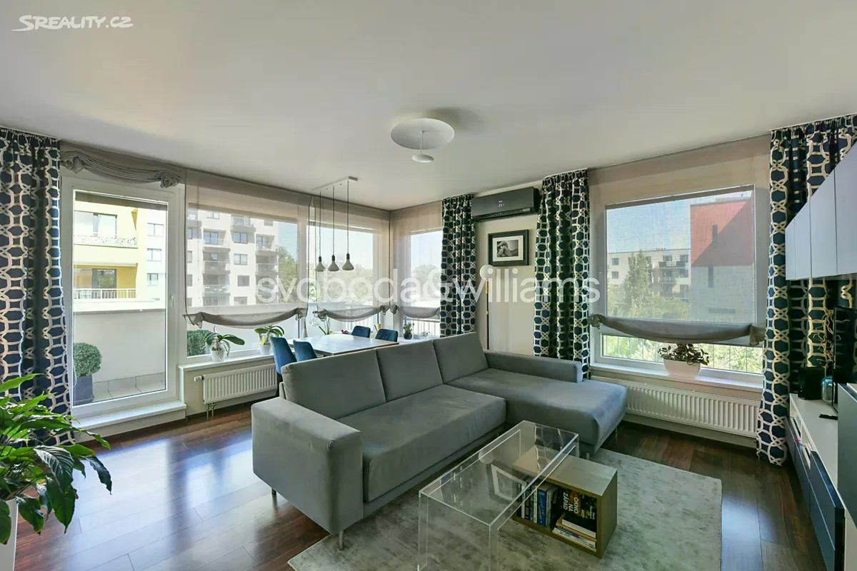 Klimatizovaný moderně zařízený třípokojový byt s balkónem a garážovým stáním je umístěný ve 3. podlaží energeticky úsporného bytového domu s výtahem postaveného v roce 2013 v rámci revitalizace čtvrti Harfa v pražských Vysočanech. Bytovou jednotku tvoří obývací pokoj s kuchyňským koutem a vstupem na balkón, 2 ložnice orientované na sever, koupelna s vanou a přípojkou pro pračku, samostatná toaleta, komora a vstupní chodba. K bytu patří 1 garážové stání. V bytě jsou plastová okna, plovoucí laminátové podlahy, vstupní bezpečnostní dveře, kuchyňská linka na míru s vestavěnými spotřebiči Zanussi a De Dietrich, koupelnová sanita značky Laufen a mramorová umyvadla. Vytápění je řešeno dálkově, v obývacím pokoji je instalovaná klimatizace. Byt se nabízí k prodeji kompletně zařízený. Lokalita je ideálním místem pro rodinný život - nabízí veškerý komfort města se skvělou dopravní dostupností MHD i autem, zároveň však zůstává na dosah přírody. V pěší vzdálenosti se nachází školy, školky, zdravotnická zařízení, restaurace a kavárny, multifunkční aréna, dvě velká obchodní centra i bazén s mořskou vodou. Okolí doplňuje bohatá nabídka dětských hřišť a sportovišť včetně rugbyového hřiště, cyklostezka vedoucí do centra a turistická trasa podél říčky Rokytky. Nemovitost bude k nastěhování volná od Q3/2026. Podlahová plocha 67,6 m2, balkón 7,8 m2.