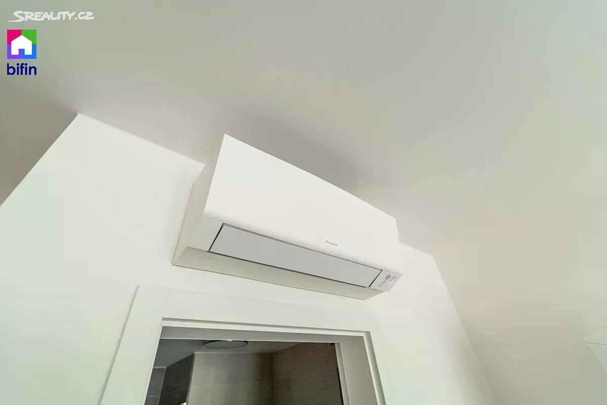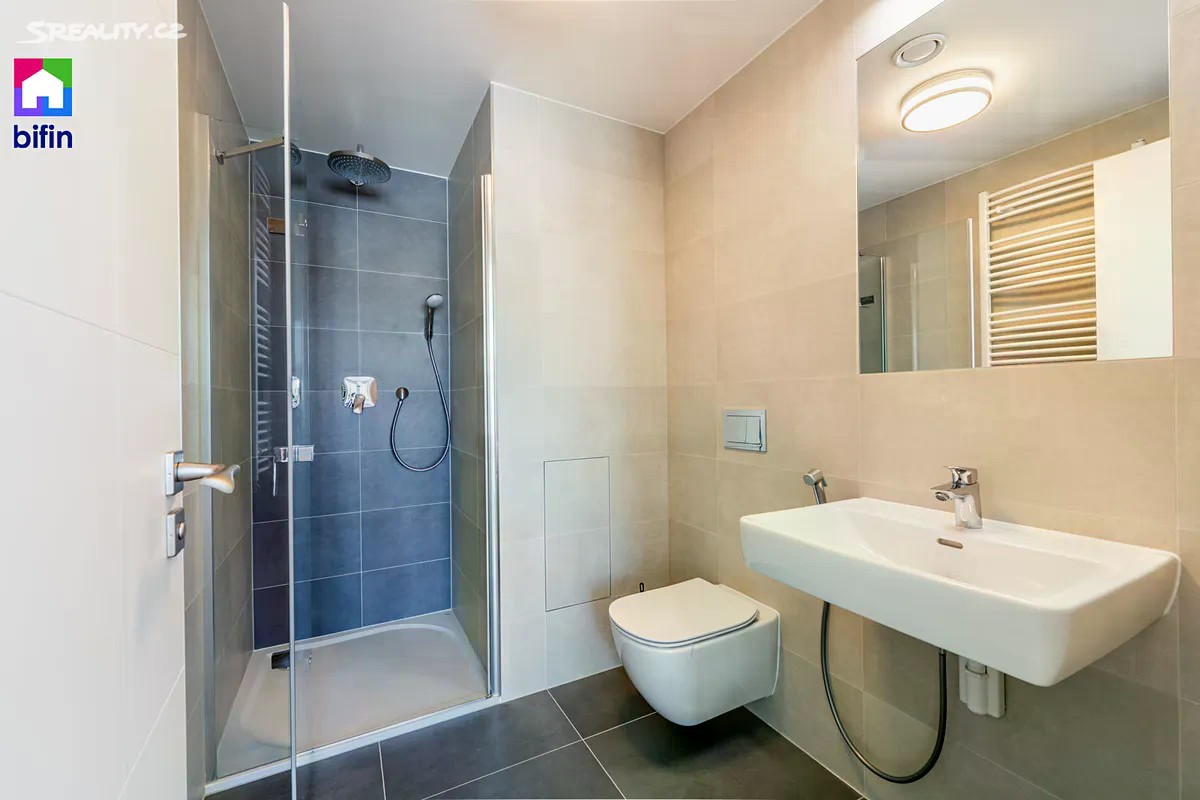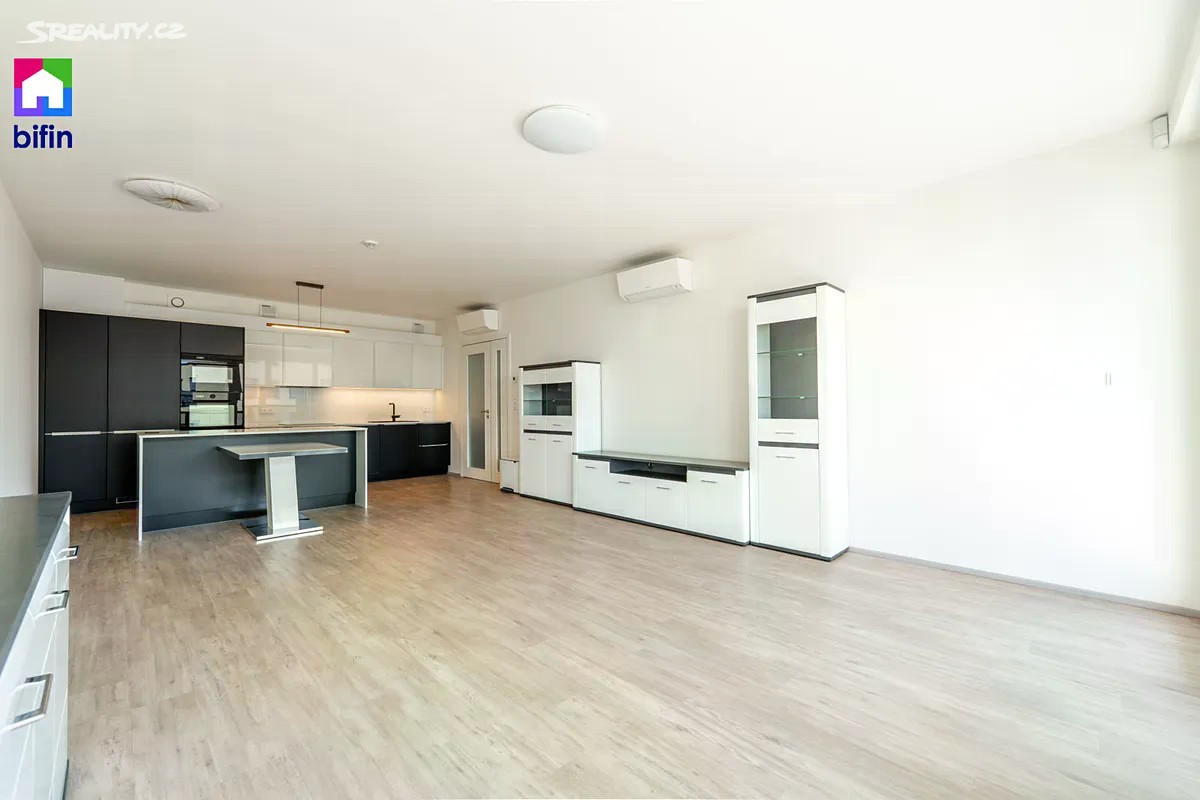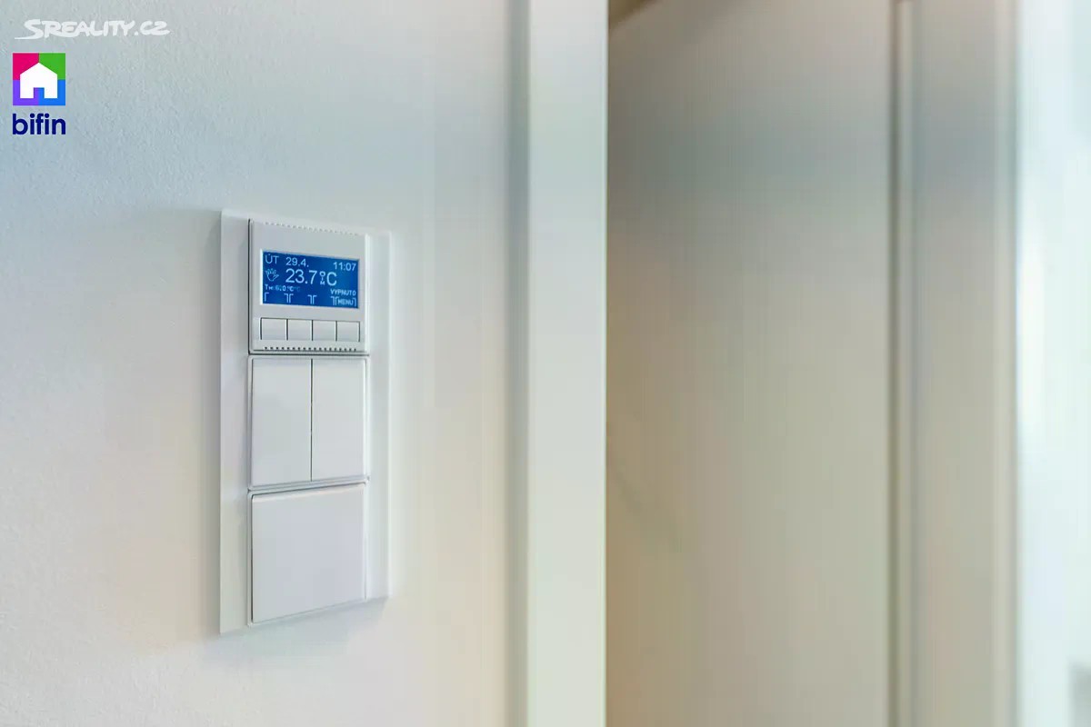 Exkluzivně Vám nabízíme ke koupi byt v osobním vlastnictví 4+kk, o celkové ploše 117,20 m2, v novostavbě bytového domu v Praze - Holešovicích. K bytu náleží lodžie o výměře 13,50 m2. Součástí prodeje je i samostatná sklepní kóje o výměře 4,70 m2 situovaná v suterénu domu. Byt se nachází v 7.NP (6. patře) novostavby bytového domu kolaudovaného v roce 2021, v žádané lokalitě Praha - Holešovice. Byt sestává z čtveřice pokojů vč. kuchyňského koutu, vstupní chodby, komory, dvou koupelen, z nichž v jedné je WC, druhá koupelna a WC jsou samostatné. Byt je zhotovený v nadstandardním provedení. Vstupní dveře jsou bezpečnostní, značky Sapeli, vnitřní dveře jsou bezfalcové s voděodolným magnetickým zámkem. Podlahy v místnostech jsou vinylové položené na sádrové stěrce. V jedné koupelně je plechová vana zn. Alca, v druhé sprchový kout se skleněnou zástěnou zn. Hüppe, v obou koupelnách jsou podomítkové baterie, designové umyvadla zn. Laufen, zapuštěná zrcadla, a vyhřívané podlahy s digitálním ovládáním. Kuchyňská linka zn. JN Interier je zhotovena s vestavěnými spotřebiči zn. Brandt, kuchyňská deska je z tvrzeného kamene zn. Technistone, dřez je granitový zn. Franke, zástěna je skleněná, osvětlení je řešeno LED světly s dotykovým ovládáním, vestavěná lednice s mrazákem je značky Liebherr. V bytě jsou instalovány vnitřní rekuperační větrací jednotky zn. Daikin, s funkcí split systém, venkovní jednotky jsou umístěny na střeše domu. Jedná se o rekuperaci pro tuto bytovou jednotku. Dále je v bytě instalován alarm. Dům je zánovní, byl kolaudován v roce 2021, a je energetické třídy B. Měsíční náklady na byt jsou velmi nízké. Vlaková zastávka Praha - Holešovice a zastávka metra C Nádraží Holešovice se nachází v docházkové vzdálenosti od domu. Aktuální dostupnost do centra Prahy trvá MHD cca 5 minut. V městské čtvrti Holešovice je široká občanská vybavenost: MŠ a ZŠ, gymnázium, lékaři, OC Stromovka, široká řada obchodů: Penny Market, Albert, Lidl, lékárny, drogerie, elektro, řada poboček bank, kaváren, restaurací, Letenské sady, plavecký bazén, sportoviště, a mnoho dalšího. Městské čtvrti Holešovice přiléhá Výstaviště a Královská obora Stromovka. K bytu lze přikoupit dvě garážová stání situovaná v suterénu domu. Byt je k dispozici. Doporučujeme Vám prohlídku. S případným financováním Vám rádi pomůžeme.