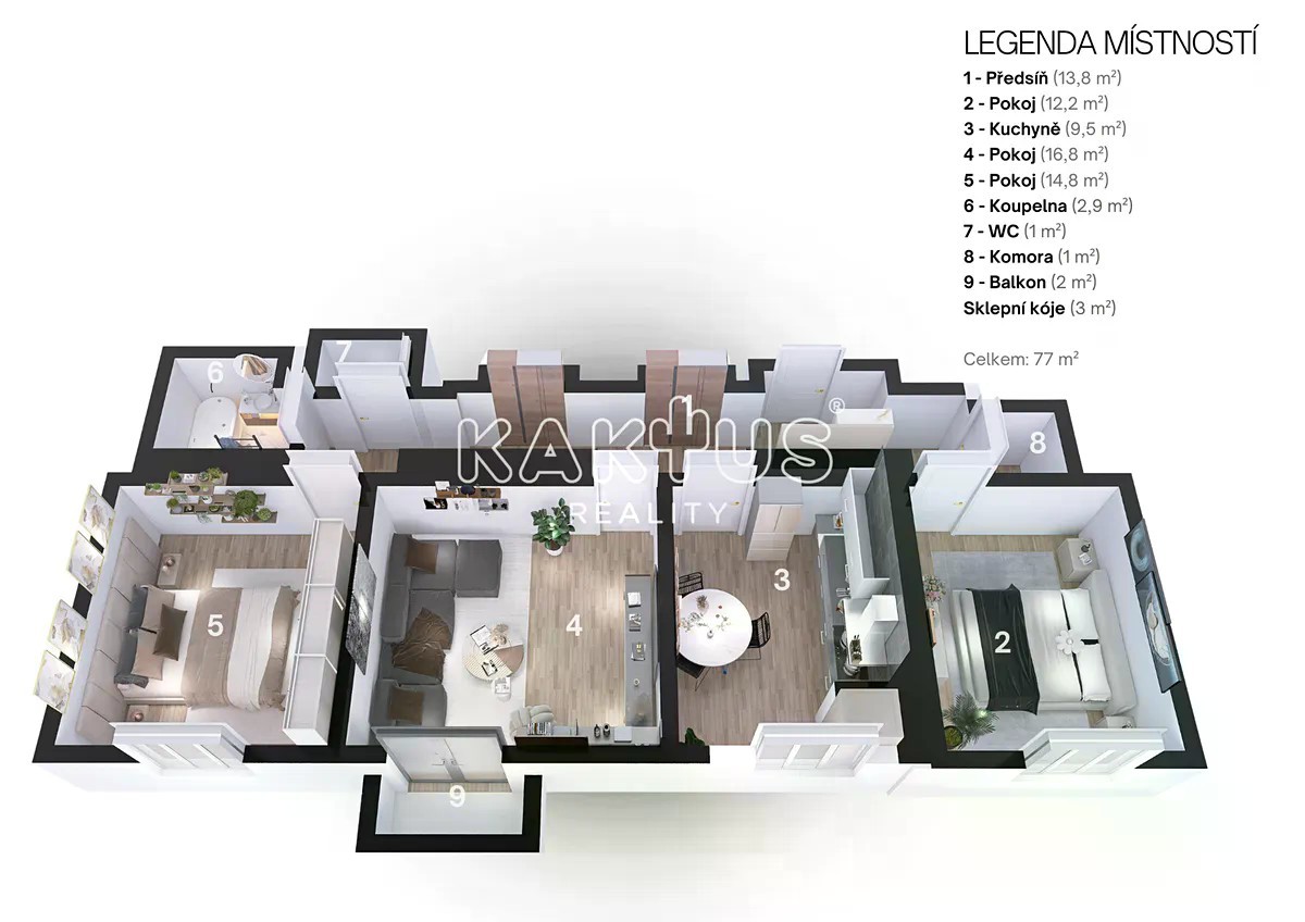 Nabízíme k prodeji prostorný byt 3+1 s balkónem o celkové ploše 77 m², z toho [2 m²] balkón a [3 m²] sklep, který se nachází ve 4. nadzemním podlaží cihlového domu s výtahem na vyhledávané adrese Porubská 826, Ostrava-Poruba. Družstevní podíl nelze převést do osobního vlastnictví. Byt má velmi praktickou dispozici - prostorná chodba, neprůchozí pokoje (obývací pokoj, ložnice a například dětský pokoj), samostatnou kuchyň a praktickou komorou. Byt je v původním, udržovaném stavu, takže si jej můžete zrekonstruovat podle vlastních představ. Koupelna a wc odděleně. Velkou výhodou u cihlové zástavby je vyzděné jádro, které výrazně snižuje náklady na rekonstrukci. Dům se nachází v žádané části Poruby s vynikající dostupností MHD, v blízkosti Hlavní třídy, škol, školek, s dostatkem obchodů a restaurací. Zde je vše, co děla Porubu Porubou. Byt je ideální pro ty, kdo hledají pohodlné bydlení v srdci Poruby s možností vytvořit si domov podle sebe. Měsíční náklady na bydlení aktuálně činí 4.110 Kč z toho fond oprav 1.021 Kč. Podíl v družstvu nelze převést do osobního vlastnictví. Máte zájem o prohlídku? Kontaktujte Davida z Kaktusu pro více informací a domluvte si termín osobní návštěvy. Financování lze zajistit prostřednictvím našeho finančního specialisty. Uvedené výměry jsou orientační. V případě více zájemců bude nemovitost prodána nejlepší nabídce a majitel si vyhrazuje právo vybrat kupujícího na základě jím zvolených kritérií. Veškeré zveřejněné údaje obsažené v tomto inzerátu mají pouze informativní charakter a nejsou nabídkou ve smyslu § 1731 nebo § 1732 občanského zákoníku, ani se nejedná o veřejný příslib dle § 1733 občanského zákoníku.