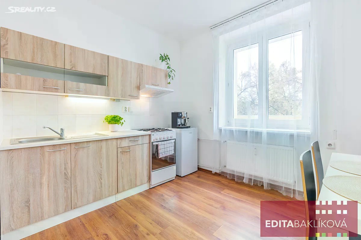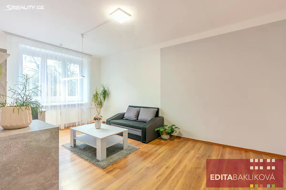 Nabízíme k prodeji prostorný cihlový byt 1+1 s možností parkování v uzavřeném vnitrobloku. O bytě: Prosvětlený byt se nachází ve 2. podlaží udržovaného domu a náleží k němu velký zděný sklep. Velkým benefitem je možnost parkování až dvou osobních automobilů rezidentů v uzavřeném vnitrobloku (aktuálně platba za 1 auto 100 Kč/měsíc, za druhé 500 Kč/měsíc). Ve vnitrobloku je dále malé oplocené posezení a dětské hřiště. Před okny bytu je úzký balkon vhodný pro umístění truhlíků a květin. Přímý vstup z tohoto bytu na balkon není - sousedé si vstupy doplnili a oddělili si minibalkonky. Byt prošel částečnou rekonstrukcí v roce 2015 - plovoucí podlahy, interiérové dveře, kuchyňská linka, koupelna a WC. Elektrické rozvody jsou v mědi v kuchyni a koupelně, zbylé v hliníku. Byt se prodává včetně vybavení nábytkem. Byt má velký potenciál - lze doplnit vestavěné skříně v předsíni nebo rohovou kuchyňskou linku. Ve velkém pokoji je dostatek prostoru pro spací kout (délka místnosti 6 m). Podlahová plocha bytu včetně sklepa: 42,56 m² (sklep 3,36 m²) Pokoj: 20,40 m² Kuchyň: 8,91 m² Předsíň: 4,80 m² WC: 0,92 m² Koupelna: 2,64 m² Spíž (komora): 1,53 m² O domě: V domě je výtah, k dispozici je kočárkárna a kolárna, na chodbě sdílený balkon. O dům je skvěle postaráno - je zateplen, vnitroblok je po revitalizaci (dlažba, parkovací místa), okna jsou plastová, vstup do domu je bezkontaktní a u vchodu je kamerový systém. Na bytě ani domě není žádný úvěr; investice do domu a vnitrobloku se řeší z naspořených prostředků SVJ. O lokalitě: Lokalita nabízí veškerou občanskou vybavenost v pěším dosahu - obchody, MHD, školku i školu. Cena včetně provize RK. Ráda Vám byt osobně představím.