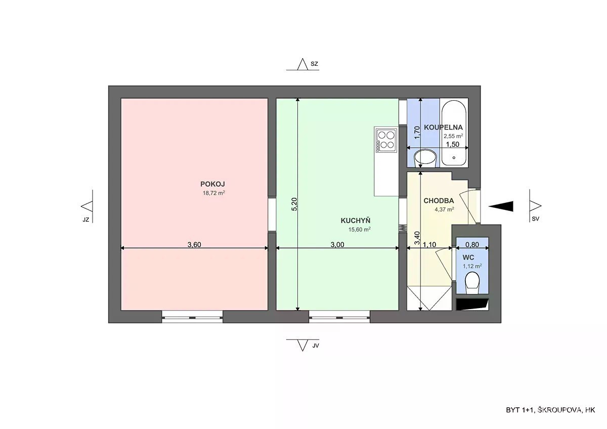 Pronájem bytu 1+1 42 m² Škroupova, Hradec Králové