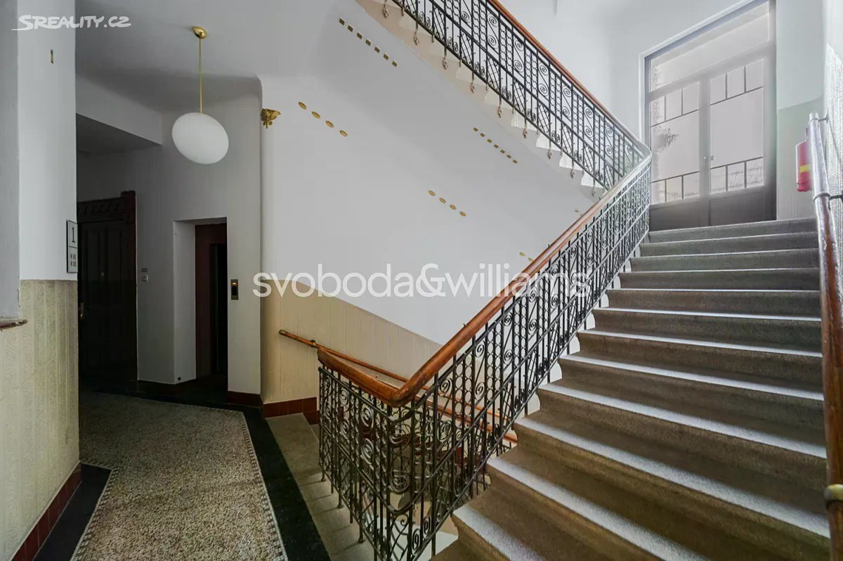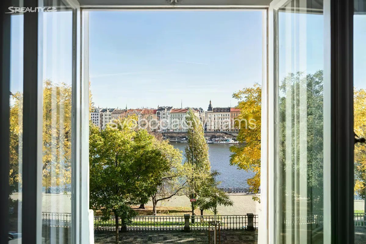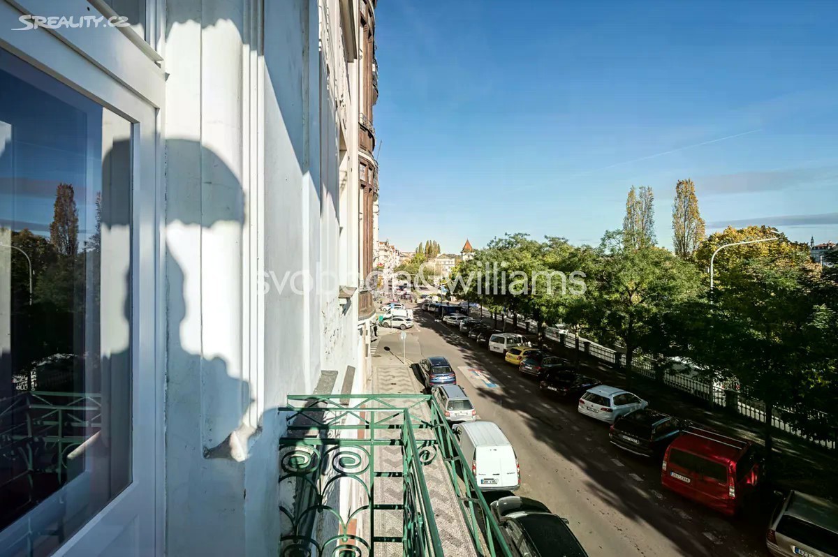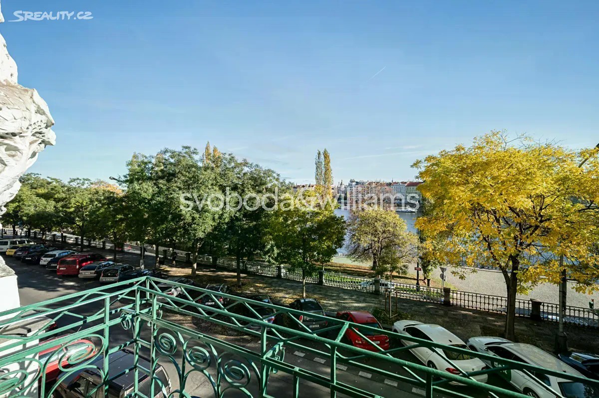 Výjimečný byt na nábřeží Vltavy. Nabízíme k pronájmu prostorný zrekonstruovaný byt se 2 koupelnami, 3 balkony a výhledy na Vltavu, Vyšehrad, Emauzy, galerii Mánes, Národní divadlo a Pražský hrad. Byt se nachází v 1. patře krásně zrenovovaného secesního domu s výtahem a majestátními vstupními prostory. Budova stojí v prestižní lokalitě na Smíchově přímo na nábřeží Vltavy, s rychlými tramvajovými spoji do centra, v pěším dosahu komerčního a zábavního centra Nový Smíchov a stanice metra Anděl. Interiér tvoří velký obývací pokoj s jídelnou a dekorativními původními kachlovými kamny, plně vybavená průchozí kuchyň, 3 ložnice s balkonem a další 2 ložnice. V bytě je dále hlavní koupelna s vanou a masážním sprchovým koutem, druhá koupelna se sprchou, 2 samostatné toalety, vybavená šatna, úložná komora, technická místnost a velká centrální vstupní hala. Zachované původní prvky, vysoké stropy, velká okna, dřevěné podlahy, dlažba, bezpečnostní vstupní dveře, nový plynový kotel, LED osvětlení, pračka a sušička AEG, myčka, horkovzdušná a mikrovlnná trouba, lednice amer. typu, vstup do budovy na čip, společná kočárkárna/kolárna. Možnost pronájmu garážového stání ve vedlejší ulici za dodatečný poplatek.