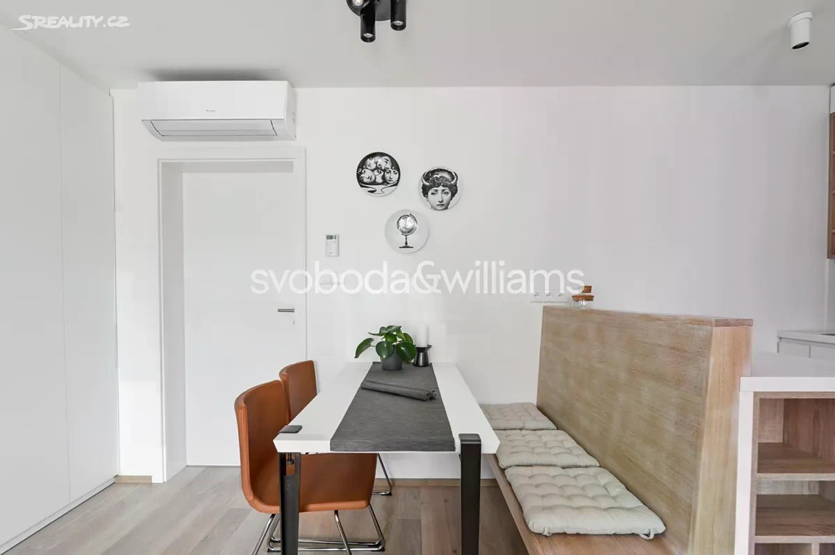 Plně zařízený designový byt s klimatizací a jižně orientovanou terasou ve 4. patře zrekonstruované budovy s výtahem a zachovanými původními prvky. Dům se nachází v klidné ulici v pěším dosahu dvou velkých pražských parků Stromovka a Letná. V blízkém okolí je k dispozici kompletní občanská vybavenost, množství kvalitních restaurací, trendy bister a kaváren, 2 minuty od domu je zastávka tramvají s rychlým spojením do centra a ke stanicím metra Hradčanská a Vltavská. Vyhledávaná lokalita s velmi rychlou dostupností na letiště a do mezinárodních škol v Praze 6. Interiér tvoří klimatizovaný obývací pokoj s jídelním prostorem, plně vybavenou kuchyní a přístupem na terasu s výhledem do vnitrobloku domu, dále 1 ložnice se 2 šatnami a koupelnou (sprchový kout, toaleta), úložná komora a otevřená vstupní chodba s vestavěnými úložnými prostory. Dřevěné podlahy, dlažba, bezpečnostní vstupní dveře, francouzská okna, plynový kotel, pračka se sušičkou, myčka, TV, zahradní nábytek, sklep.