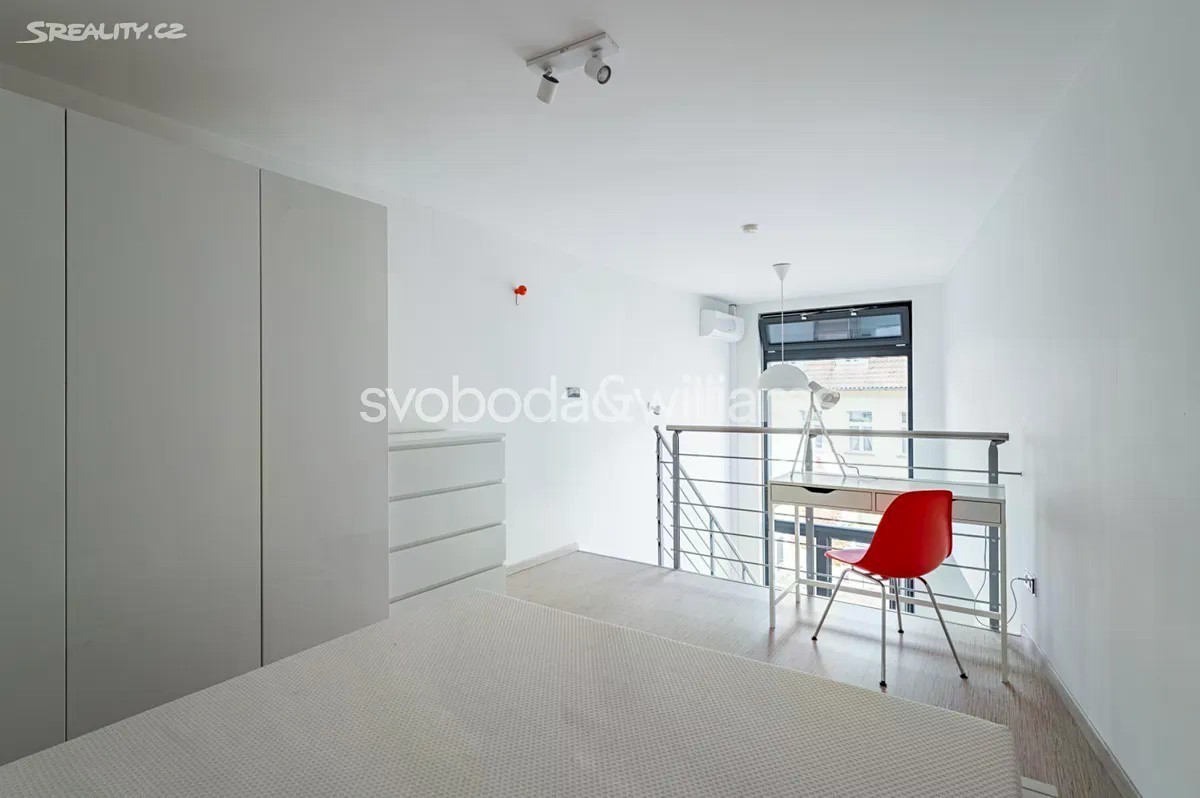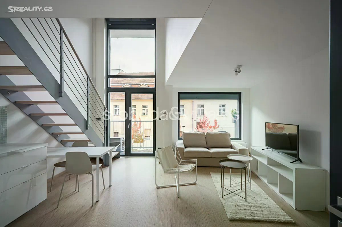 Nabízíme k pronájmu kompletně zařízený loftový byt s malým balkonem, situovaný v 1. patře rezidenčního projektu X-LOFT, moderní nízkoenergetické novostavby s parkováním a kamerovým systémem. Budova stojí v klidné ulici v Praze Libni nedaleko říčky Rokytky, v rychlém dosahu plné občanské vybavenosti a centra, 3 minuty chůze od stanice metra Palmovka. Součástí místní vybavenosti je široká nabídka obchodů a služeb, školy, park Thomayerovy sady, četná sportoviště a nedaleká cyklostezka. Interiér tvoří obývací pokoj s plně vybavenou kuchyní a balkonem, otevřená ložnice, koupelna s vanou a toaletou a vstupní chodba. Byt je orientován na východ do klidného vnitrobloku. Klimatizace, strop o výšce 4,7 m, laminátové podlahy, dlažba, okna s trojskly, elektricky ovládané předokenní žaluzie, centrální vytápění, pračka se sušičkou, myčka, indukční varná deska, mikrovlnná trouba, solární panely na střeše domu (nízké náklady).