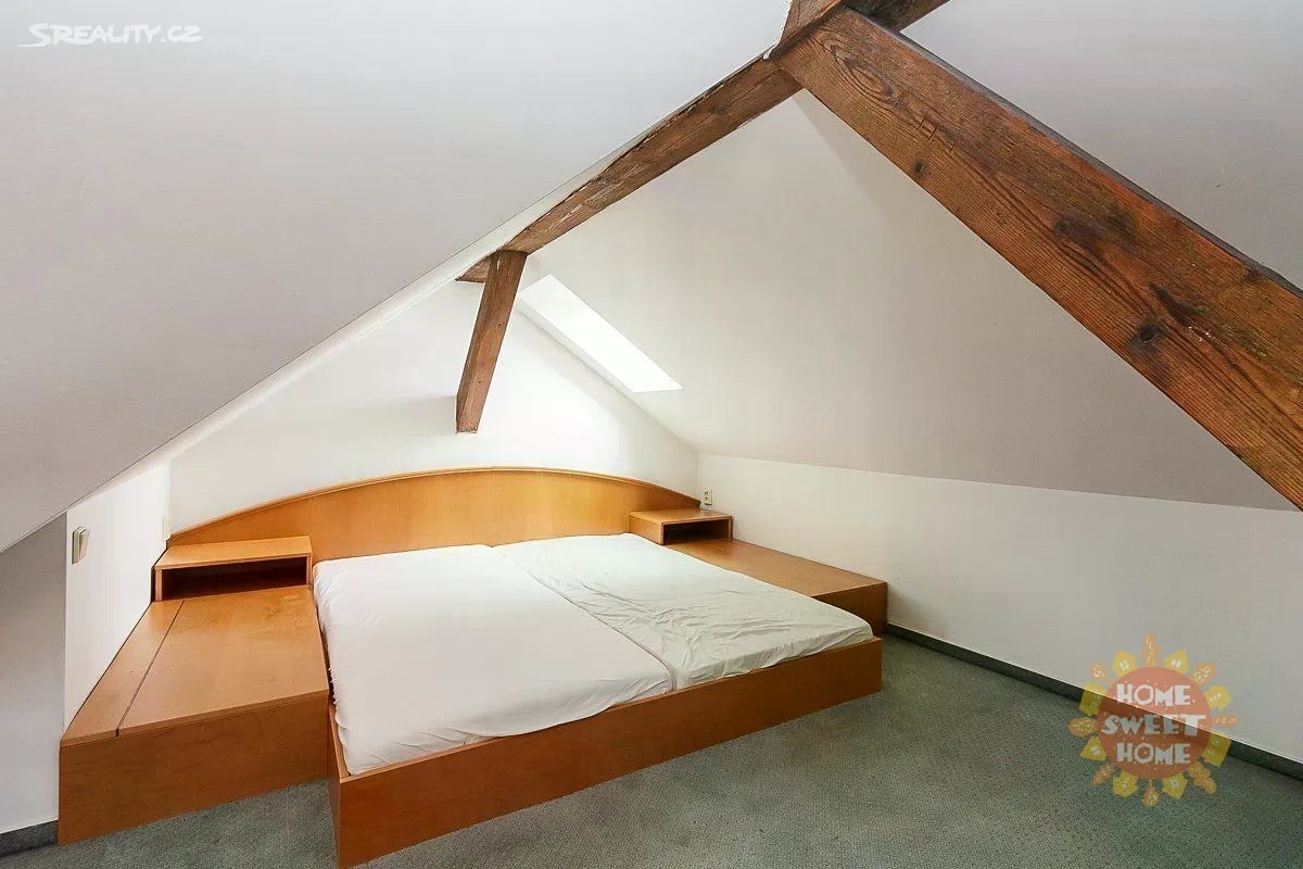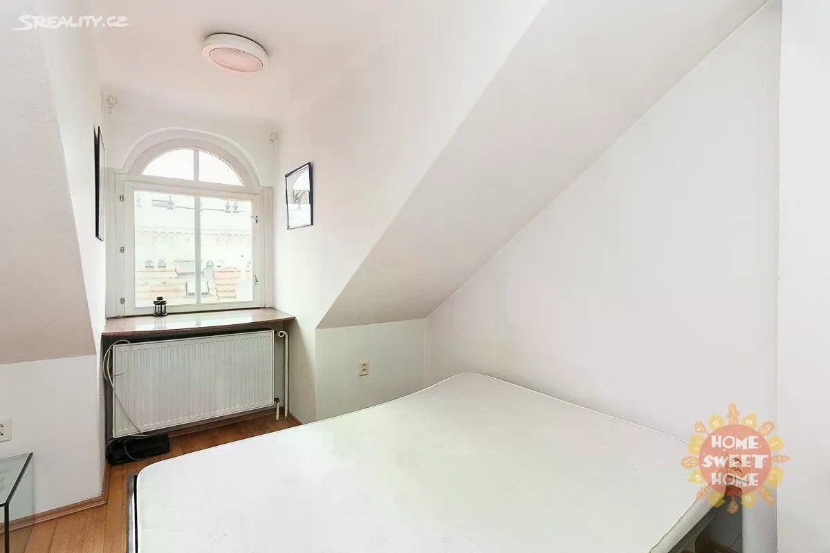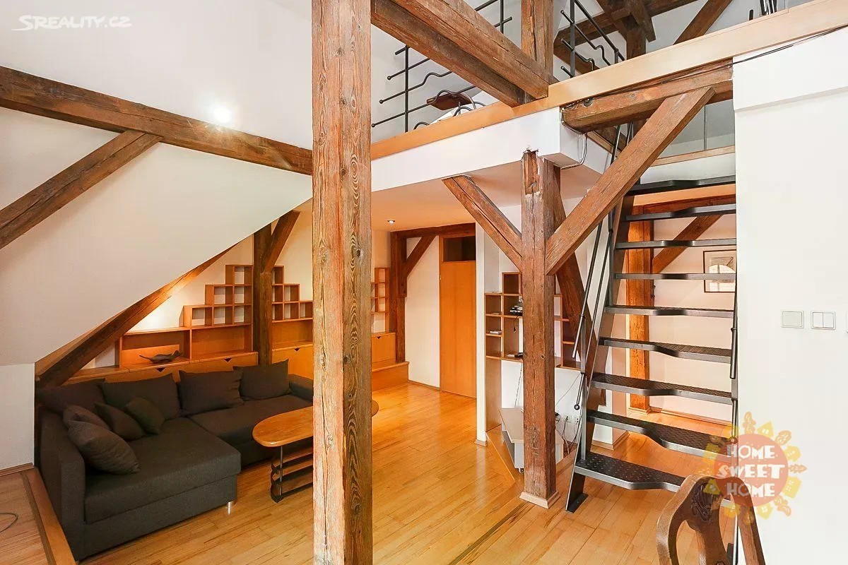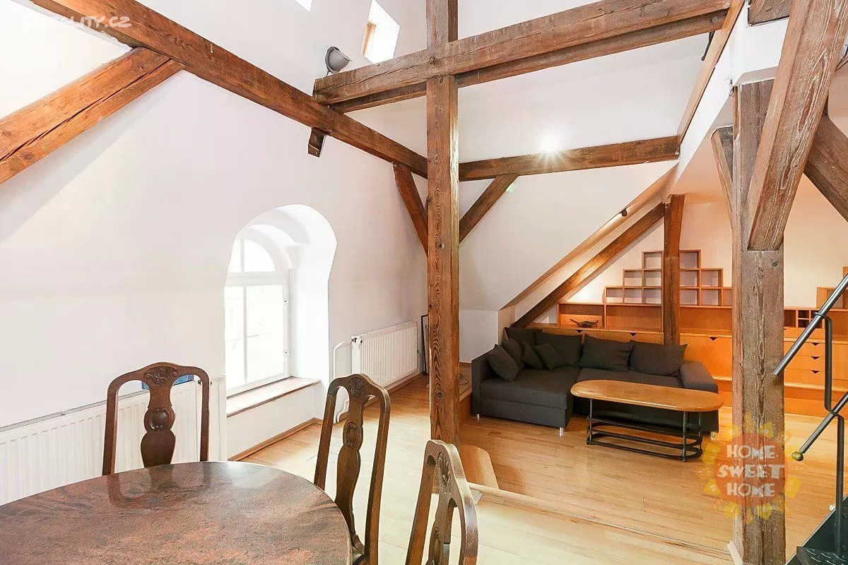 Zařízený mezonetový byt s mnoha původními prvky v atraktivní lokalitě Starého Města s okouzlujícím výhledem až na Pražský hrad. Celková výměra bytu je 120 m2. Byt se nachází v pátém patře historického domu bez výtahu. Byt 3+1 je je zcela zařízený. Byt je složen z jednoho menšího pokoje, jednoho velkého pokoje s manželskou postelí v otevřeném podkrovním patře, kuchyně a dvou koupelen a je zcela zařízený včetně vestavěné skříně, s dřevěnou podlahou a dlažbou. Kuchyň je vybavena elektrickými spotřebiči. Součástí bytu je pokoj pro hosty s vlastní koupelnou se sprchovým koutem. V jedné ze dvou koupelen je masážní vana. Dům je zabezpečen a napojen na bezpečnostní pult. Ideální umístění v centru Prahy, stanice metra Můstek je vzdálena 3 minuty od domu. Pouze na dlouhodobý pronájem (min. doba pronájmu je jeden rok). Vratná kauce majiteli je v hodnotě 40.000Kč. Byt je ihned dostupný k pronájmu.
