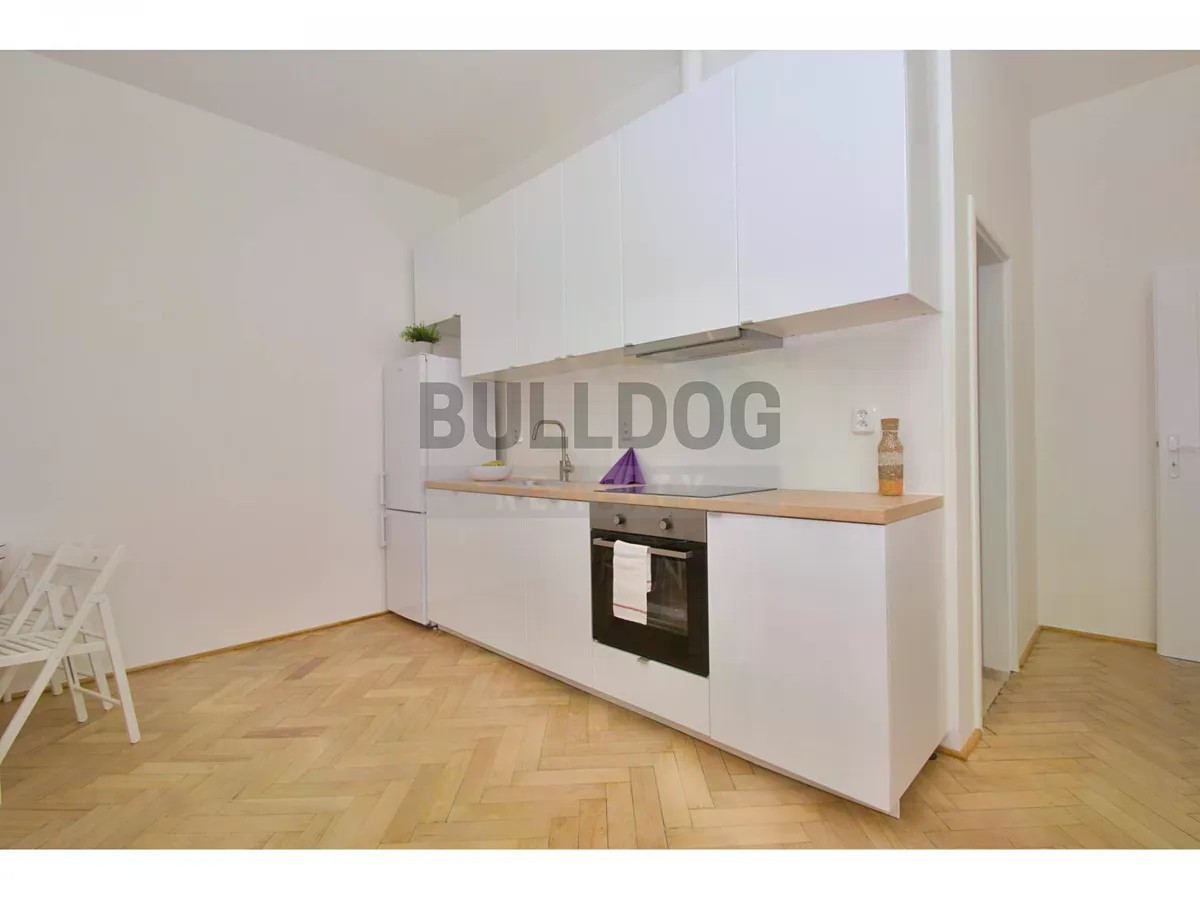 Exkluzivně nabízíme k pronájmu byt 3+kk, 70 m2, který prochází výměnou podlahové krytiny a instalací nové klimatizace - na fotografiích jsou parkety, ale momentálně se v celém bytě pokládá kvalitní vinylová podlaha v dekoru dřeva. Byt nachází ve 3. patře cihlové budovy s výtahem, 150 metrů od stanice metra Palmovka. Byt je zařízený novou kuchyňskou linkou s vestavěnými spotřebiči (sklokeramická deska, vestavěná trouba, myčka a odsavač par), samostatně stojící kombinovanou lednicí a pračkou. V bytě byla provedena v roce 2017 kompletní rekonstrukce rozvodů (elektrika, voda a odpady), nové sádrové stěrky, repase původních parket, nové interiérové dveře, plastová okna a po celém bytě je rozvedena domácí internetová síť a rozvod televize. Byt je vytápěn elektrickými úspornými akumulačními přímotopy Mirava a ohřev vody je řešen bojlerem, do bytu je zaveden třífázový rozvod s dvoj tarifní sníženou sazbou (tzv. noční proud). V domě je k dispozici připojení přes vysokorychlostní kabelovou síť UPC nebo je možné zprostředkovat sdílený internet za 250,- Kč/měs. V místě a blízkém okolí je veškerá občanská vybavenost - restaurace, obchody, lékárny, supermarkety (Billa, Kaufland, Albert), divadla, golfové hřiště, fitness, školy, školky, OC Harfa, praktičtí lékaři a pošta. Výborná dostupnost do centra - dopravní uzel metro B, autobusy č ********* H1, 185 a 239, tramvaje č ********* ********* a 26 a několik nočních spojů, např. na Nám. Republiky jste za 7 min. a na Václavském nám. za 8 minut. Nájem je uveden bez poplatků 675,- Kč/osoba + vlastní spotřeba energií a internetu. Výborná nabídka - vhodné pro rodinu či spolubydlení, nebo pro firmu na kanceláře. Doporučujeme! Pro více informací kontaktujte makléřku.