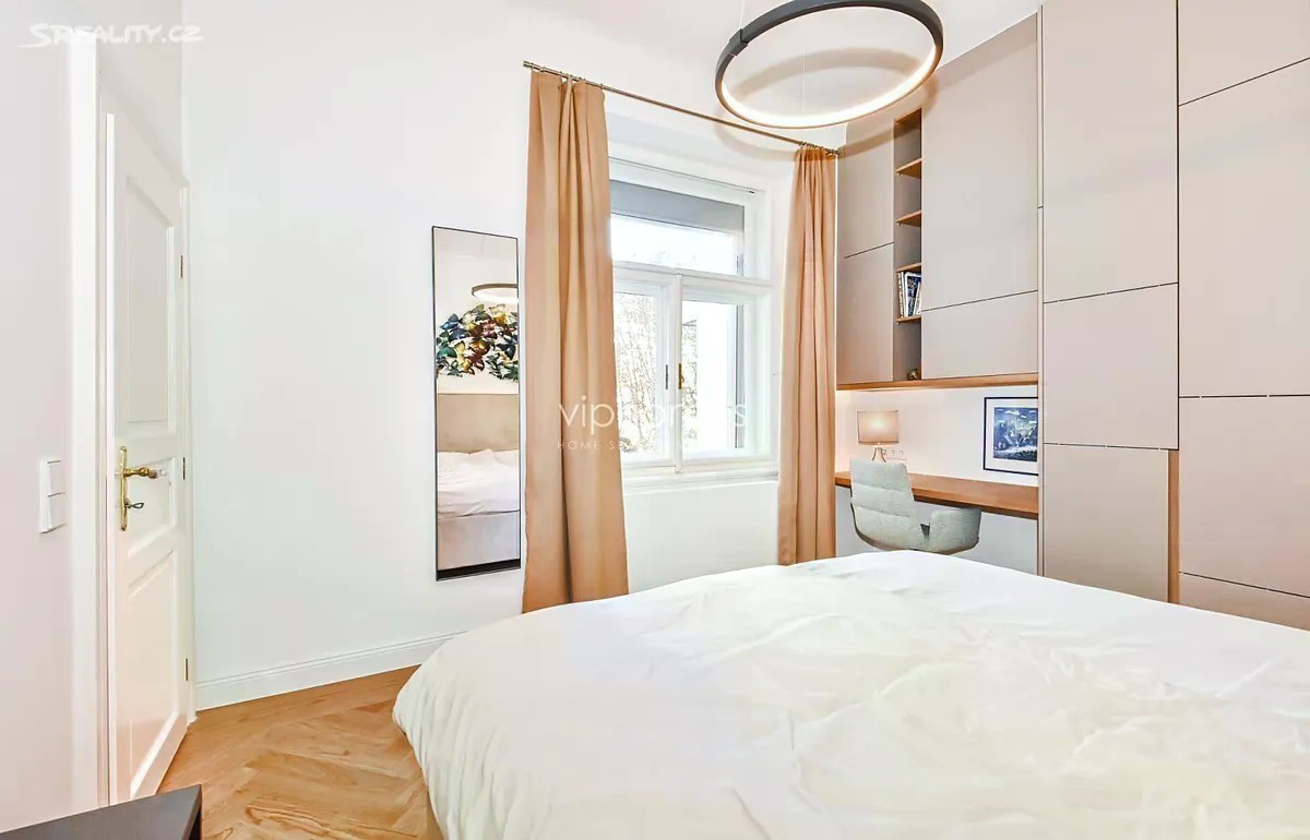 Nabízíme k pronájmu elegantní designový byt s dispozicí 3+kk o celkové ploše 108 m², situovaný ve 3. patře secesní budovy v srdci Starého Města. Spojení tradiční, historické architektury s moderním stylem bydlení na jedné z nejžádanějších adres v Praze, v pěším dosahu Staroměstského a Václavského náměstí. Výhodná lokalita pouhých pár minut chůze náměstí Republiky se stanicí metra a nákupním centrem Palladium s pestrou nabídkou restaurací, kaváren, butiků, obchodů. Vzdušný interiér tvoří prostorný obývací pokoj s jídelnou a plně vybavenou kuchyní, (orientace východ), dvě ložnice, (orientace západ) s výhledem na Týnský chrám, koupelna ze sprchovým koutem, toaletou, technická místnost s pračkou a sušičkou, toaleta pro hosty a vstupní hala. Kuchyň je vyrobena na míru ze špičkově kvalitních materiálů - dřevo, mramor, pracovní deska kuchyňské linky a ostrůvku je z mramoru v béžovo-medovém odstínu, zabudované spotřebiče, elektrická trouba značky V-ZUG. Dubové parkety jsou umístěny v obývací části bytu, na chodbě a v ložnicích. Dokonalé stropní podhledové osvětlení umocňuje příjemný vzhled a útulnost spolu s bio-krbem, TV je značky Samsung Frame a je vhodná pro projekci vašeho oblíbeného umění.umění Vkusně a nákladně rekonstruovaný byt se nabízí vybavený nábytkem, po domluvě i bez. Zálohy na energie se hradí zvlášť. Lokalita je vskutku centrální, procházky starou Prahou i po nábřeží či v parku Letná jsou denní samozřejmostí. Pro více informaci nás neváhejte kontaktovat. Doporučujeme osobní prohlídku. K dispozici od ledna 2026.