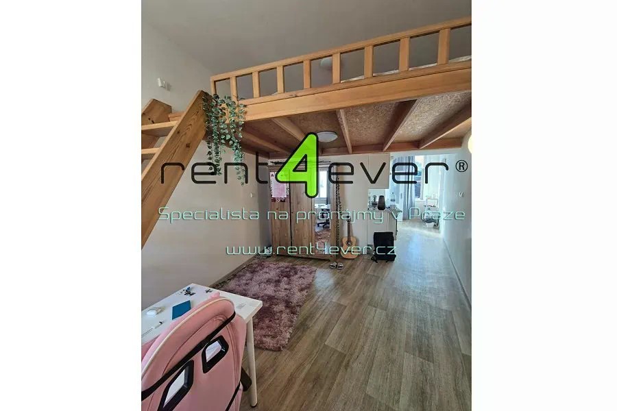 Smíchov, Holečkova, pěkný světlý byt 1+kk, 27 m2, po rekonstrukci, s vestavěným patrem na spaní, nezařízený nábytkem. Kuchyňská linka je vybavena sklokeramickou varnou deskou, troubou, digestoří a ledničkou. Nad kuchyňskou linkou je zděný podhled - úložný prostor. Koupelna se sprchovým koutem a WC. Přípojka na pračku je umístěna v vstupní chodbě. Pračka nebude k dispozici. Podlahy plovoucí a dlažba. Okna dřevěná, orientována jak do vnitrobloku, tak do hlavní ulice. Vytápění: elektrický přímotop. Do bytu se vchází z uzamčené pavlače, kde lze mít sezení do klidové zóny. Dům bez výtahu se nachází v bezprostřední blízkosti zeleně - Husovy sady, Bertramka, park Sacré Coeur. Lokalita s výbornou občanskou vybaveností a dopravní dostupností MHD. K nastěhování listopad - prosinec 2025. Realitní společnost nemá k dispozici energetický štítek, proto je prozatím uváděna PENB třídy: G