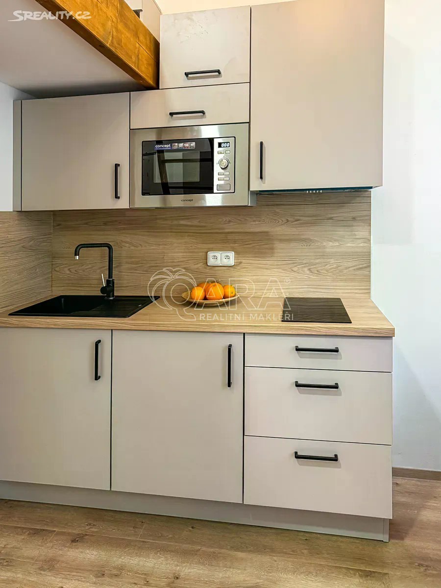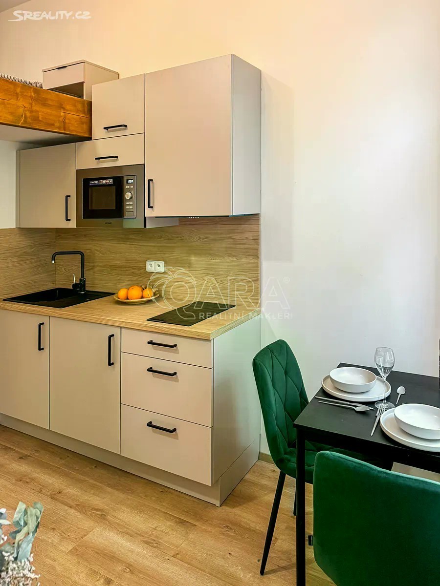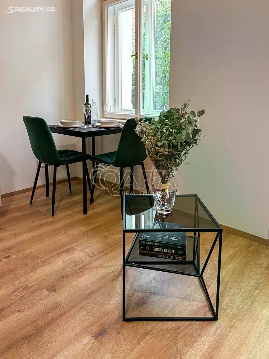K pronájmu nabízíme elegantní, nově zrekonstruovaný a kompletně zařízený byt/ateliér 1+kk s patrem na spaní v ulici Sokolská, Praha 2 - na opravdu dobré adrese, jen pár minut od I. P. Pavlova. Světlý byt s podlahovou plochu 17,1 m² se nachází ve 2. patře udržovaného domu s recepcí a výtahem. Dispozice je řešená velmi chytře: dole je obytná část s kuchyní (13,1 m²) a nahoře pohodlné patro na spaní o velikosti cca 5 m², díky čemuž působí byt větším a hlavně praktickým dojmem. Byt je zařízen kuchyňskou linkou, jídelním stolem se židlemi, pohovkou a šatní skříní se zrcadlem, takže je možné se prakticky ihned nastěhovat. Koupelna s toaletou (3,8 m²) je prostorná v elegantním stylu. K bytu navíc patří i komora na patře o velikosti 1,6 m² s místem na pračku. Lokalita je velkým benefitem. Sokolská, Praha 2 znamená, že jste pár kroků od metra C - I. P. Pavlova, zastávek tramvají a do centra jste za pár minut pěšky. V okolí je spousta kaváren, bister, restaurací, obchodů i služeb, takže se dá fungovat úplně bez auta. Zároveň máte možnost mít v centru malé, ale reprezentativní a elegantní bydlení. Vhodné pro jednotlivce, případně pár. K nastěhování ihned.
