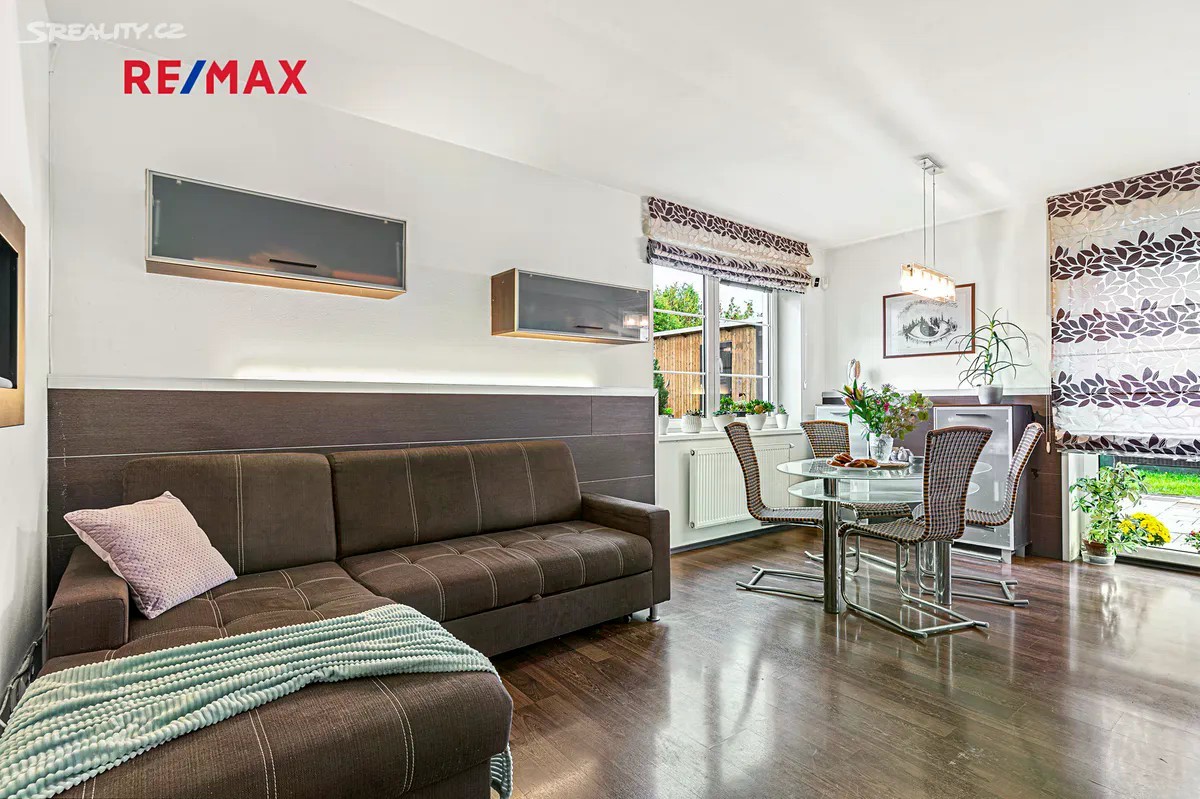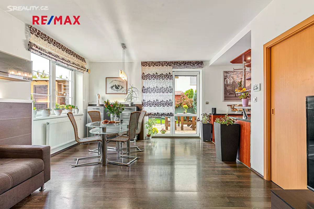 Hledáte klidné bydlení pro rodinu nedaleko Prahy či Kladna? Světlý mezonetový byt 4+kk s menší zahradou jistě splní požadavky vaší rodiny pro komfortní bydlení. V přízemí bytu se nachází předsíň se vstupem na samostatné WC, do komory pod schodištěm a do světlého obývacího pokoje s kuchyňským koutem s vestavěnými spotřebiči. Je zde i dostatek prostoru pro jídelní stůl. Z obývacího pokoje je přímý vstup do menší zahrady, která vybízí k příjemnému posezení či grilování s rodinou a přáteli. V patře mezonetového bytu naleznete tři samostatné pokoje a koupelnu s vanou a WC (viz půdorys ve fotogalerii). Ohřev vody a vytápění nemovitosti je řešeno plynovým kotlem. K bytu náleží jedno parkovací stání přímo před domem. Dům, ve kterém jsou pouze tři bytové jednotky se nachází v klidné části, jen 6min chůze od centra obce Velké Přílepy. Obec Velké Přílepy se nachází necelých 15km severozápadně od centra Prahy a 15min jízdy od letiště Václava Havla nebo necelých 20km od Kladna. Spojení s Prahou či Kladnem je zajištěno autobusovými linkami PID 316 (Bořislavka) a 350 (Dejvická/Kladno). V obci naleznete základní občanskou vybavenost: obecní úřad, poštu, MŠ, ZŠ, ZUŠ, kino, obchody s potravinami a další.