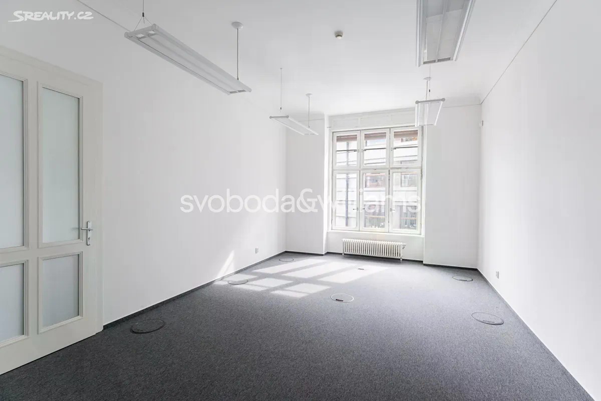 Kanceláře k pronájmu ve 3. patře komplexu tří multifunkčních budov, který byl postaven dle návrhu významného architekta Emila Králíčka. Stavba v sobě kloubí prvky geometrické moderny a kubismu. Prostor je možné rozdělit na 2 pronajímatelné jednotky. Lokalita: Budova se nachází v blízkosti stanice metra Můstek (trasa A a B) a tramvajových zastávek, pár minut chůze od stanice metra Muzeum (trasa A, C). Vybavení a služby: Centrální recepce Ostraha budovy 24/7, CCTV Klimatizace IT kabeláž Kavárna v přízemí budovy Sociální zázemí včetně sprchy Alarm Nájemné a poplatky jsou uvedeny bez DPH. Nájemce neplatí provizi.