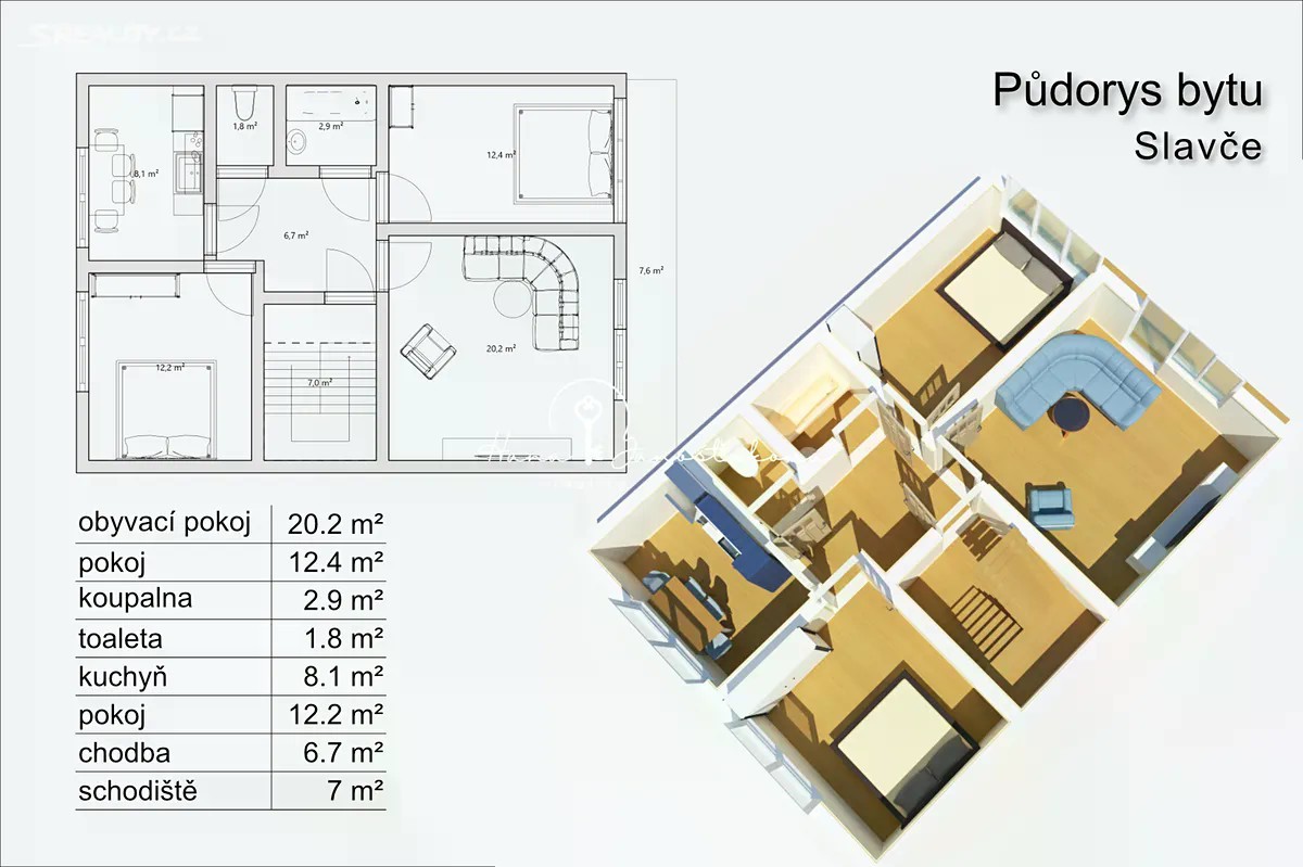 Nabízím ke koupi spoluvlastnický podíl ve výši jedné poloviny s výlučným užíváním bytové jednotky nacházející se v 1. patře montovaného domu v obci Slavče u Trhových Svinů. Dům se nachází v klidné části obce v blízkosti kostela. Dispozice bytu je 3+1 o velikosti 64,3 m2, z obývacího pokoje je vstup na balkon o velikosti 7,6 m2, který je přes celou šířku domu Nemovitost je rozdělená a užívaná jako dva samostatné byty. Každá bytová jednotka má samostatné vytápění, elektřinu, vodu. Bytová jednotka je vytápěna elektrickým kotlem s dálkovým a časově nastavitelným termostatem, teplo je rozvedeno do radiátorů. Byt je v původním průběžně udržovaném stavu. V přízemí domu je kotelna a dílna. Ve Slavči je mateřská škola, působí zde sbor dobrovolných hasičů, obec má autobusové spojení s nedalekými Trhovými Sviny, kde je veškerá občanská vybavenost. V blízkosti Slavče se rozprostírá Přírodní park Soběnovská vrchovina, která je příjemným místem pro milovníky přírody. V případě zájmu o prohlídku mě neváhejte kontaktovat. Ráda Vám pomohu i se zajištěním financování.