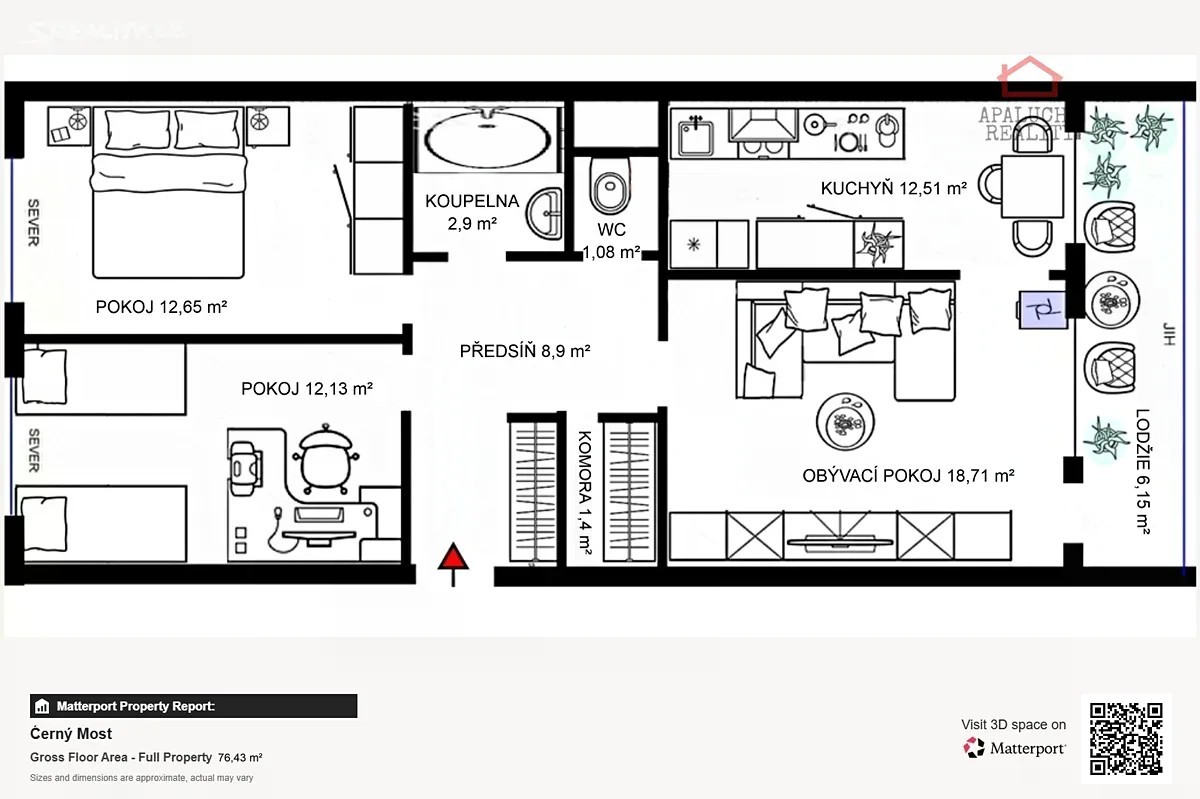 APALUCHA REALITY Vám exkluzivně nabízí k prodeji prostorný byt 3+1 se zasklenou lodžií a sklepní kójí v ulici Doležalova na Praze 9. Byt se nachází v 7. patře, s krásným výhledem, v moderním panelovém domě z roku 2000 s výtahem. Byt je nadstandardně vybaven klimatizační jednotkou pro obývací pokoj a prostor kuchyně. Koupelna je vybavena rohovou vanou, WC je samostatné a veškeré sociální zázemí je vystavěno z cihel. Voda a odpady jsou v plastu. Jsou instalovány nové bezdrátové měřiče tepla na radiátorech. Dispozice bytu dále zahrnuje vstupní chodbu s vestavěnými skříněmi a samostatnou šatnou přístupnou z haly, dále prostor kuchyně s jídelním koutem, obývací pokoj se vstupem na zasklenou lodžii, prostornou ložnici a další pokoj s výhledem na jih. Byt je v dobrém, plně udržovaném stavu a je nabízen nevybavený s absencí kuchyňské linky, kromě stávajícího el. sporáku s troubou, což je příležitost pro nového majitele pro instalaci nové kuchyně bez nákladů na demontáž a likvidaci původního vybavení. Byt se nachází v bytové zástavbě s vynikající dopravní dostupností, stanice metra, autobus i vlakový terminál. Snadné napojení na Pražský okruh. Parkování v okolí domu bez rezidentních zón. Veškerá občanská vybavenost v docházkové vzdálenosti, nákupní Centrum Černý Most, základní a střední škola, gymnázium, pošta, poliklinika, městský úřad, restaurace, pizzerie, fitness, centrální park s rybníkem, hřiště, cyklostezky, přírodní rezervace a golfové hřiště. Nemovitost není zatížena žádným zástavním právem, tudíž garantujeme rychlý převod na nového majitele. Financování je možné z vlastních zdrojů nebo úvěrem, se kterým Vám rádi pomůžeme.