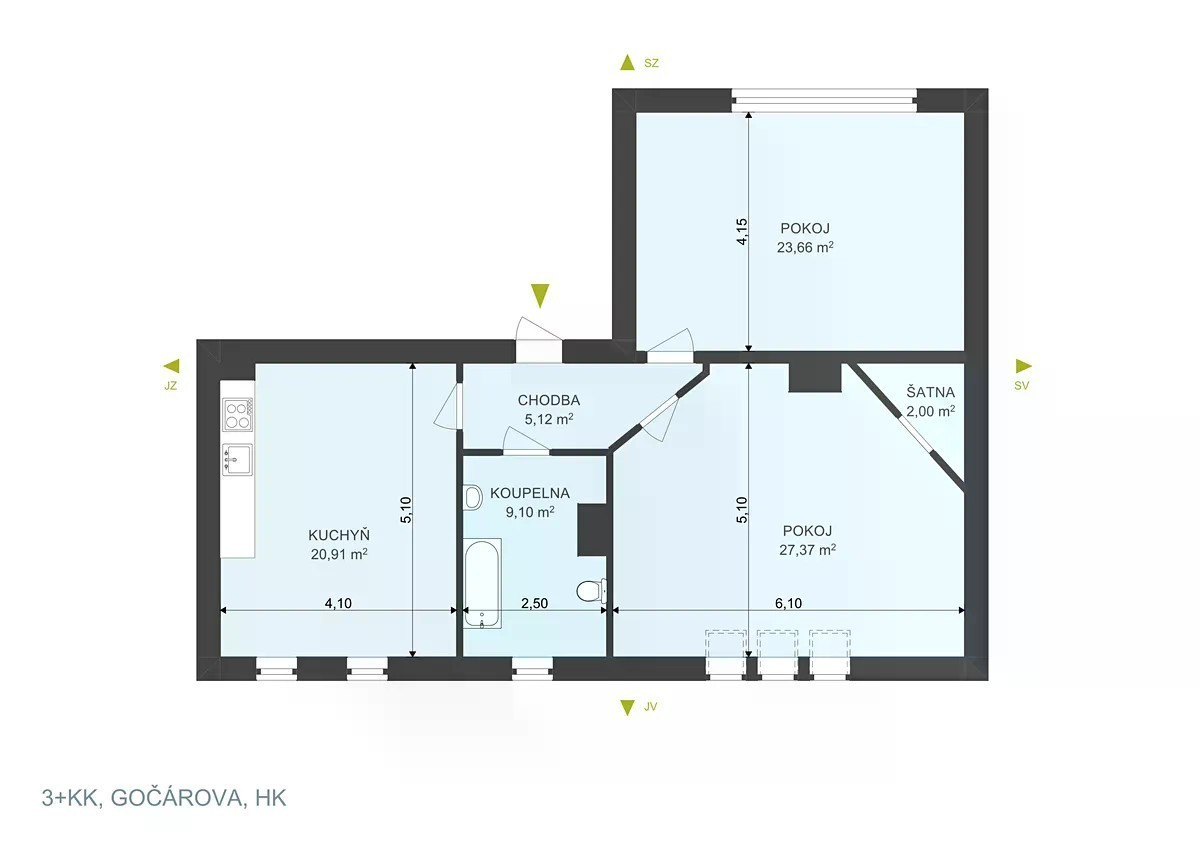 Pronájem bytu 3+kk 88 m² Gočárova třída, Hradec Králové - Pražské Předměstí