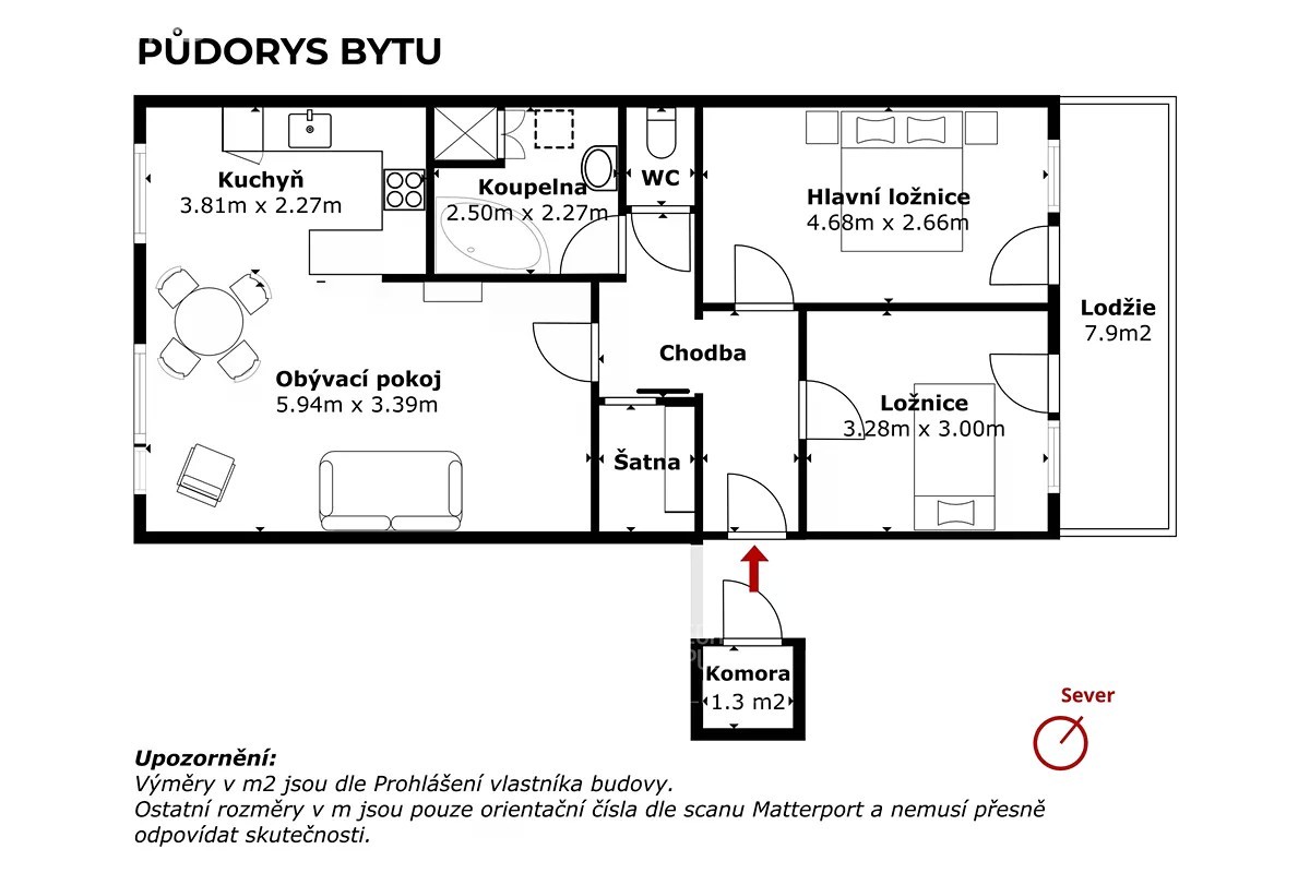 U metra C - Střížkov, po poctivé rekonstrukci, a dvě ložnice s lodžií! Na prodej je byt 3+kk o podlahové ploše 72 m2 + komora 1.3 m2 + lodžie 7.9 m2. Byt má 3 hlavní místnosti: 1) Slunný obývací pokoj s kuchyňským koutem. Vejde se sem velký jídelní stůl, gauč, televize a ještě místo zbyde. Kuchyňský kout je prostorný a můžete si ho zařídit podle sebe. (Na vysvětlenou: Majitelé při rekonstrukci v roce 2007, udělali nové rozvody elektřiny, vody, odpady a stěny, přepoužili však skříňky z původní kuchyně. Vy si ale můžete dát skříňky i spotřebiče nové a udělat si kuchyň podle sebe!) 2) Hlavní ložnice, která pohodlně pojme manželskou postel i vestavné skříně. 3) Druhá ložnice, která pojme opět manželskou postel či dvě jedno-lůžka. Z obou ložnic je přístup na zasklenou lodžii, kam si můžete dát třeba jízdní kola. Byt má prostornou "walk-in" šatnu, kde uložíte denní i sezónní oblečení. Je tu koupelna s vanou, a prostorem pro pračku i sušičku. A také je tu samostatná toaleta. Bonus je samostatná komora, kterou najdete hned naproti vchodovým dveřím do bytu. Lyže, marmelády, či vysavač, tak můžete mít hnedka po ruce (1 metr od bytu). Okna bytu jsou na severovýchod (SV) a jihozápad (JZ). Obývací pokoj je na jihozápad a je odpoledne krásně zalitý sluncem. V ložnicích na severovýchod se Vám bude zas večer dobře usínat a ráno dobře probouzet. Pod okny najdete spoustu stromů a zeleně, takže výhled budete mít velmi příjemný a zelený. Byt je po rekonstrukci z roku 2007. Nosné stěny zůstal panel, jinak vnitřní příčky jsou kompletně zděné, rozvody elektřiny jsou kompletně v mědi, voda v plastu a rozvody topení v mědi. Majitelé si dělali rekonstrukci pro sebe a poctivě. Byt je umístěn v 3. NP panelového domu. Dům má přímo před vchodem klidnou jednosměrnou ulici, kde se parkuje a na kterou se dá sjet z ulice Vysočanská. Za domem zas najdete chodník a mini parčík. Takže přímo před domem i za domem máte naprostý klid a bezpečí. Dům má zrekonstruovanou fasádu, zasklené lodžie a zrekonstruovaný výtah. Odemykání domu je na čip. Dům je 400 m od metra C Střížkov a 650 m od metra C Prosek. Autobusová zastávka Sídliště Prosek je hned před domem přes ulici. Nakoupit dojdete do Lidlu, Billy, Normy, či Penny. Do parku si skočíte přímo před dům do Parku Přátelství a do kavárny zajdete kousek od metra. Z bytu se dostanete městskou dopravou kamkoliv po Praze opravdu za chviličku (od vchodu domu na Muzeum je to 21 minut). Auto zas zaparkujete na fialové zóně před domem. Náklady na bydlení jsou: SVJ (voda, odpad, fond oprav,. ) 6 729 Kč + elektřina cca 1 300 Kč + plyn cca 499 Kč Přijďte se podívat na prohlídku!