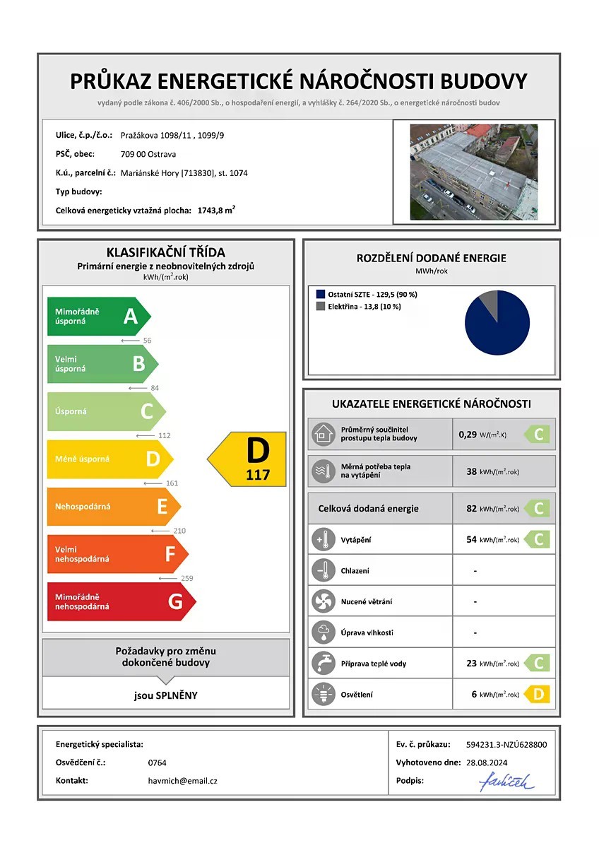 Z původní dispozice 2+1 byl byt výhodně uzpůsoben na 3+1. Nachází se v 1NP, okna jsou oproti chodníku vyvýšená, v nepohledové výšce. Byt je pečlivě udržován a před předáním bude čerstvě vymalován. Moderní interiér je laděný převážně do dubu, do teplých světlých odstínů, aby navodil domácí pohodu. Stejně tak jsou sladěny i další prvky jako úchytky či dveře do jednotného designu. V kuchyni je použito kvalitní kování s pomalými dojezdy. Z vybavení můžu ponechat chodbovou skříň, botník, úzkou skříňku a sedák s úložným prostorem v koupelně, šatní skříň v ložnici, skříně podél stěny v obývákovém výklenku a udržovanou vysokou lednici. Samozřejmostí je i vestavěná pračka v kuchyni. Elektřina v celém domě je v mědi, odpady v plastu. Původní jádro je vkusně a kvalitně opraveno a obloženo. Rekonstrukce interiéru proběhla v roce 2020. V roce 2025 byla dokončena kompletní revitalizace budovy - venkovní elektrické žaluzie, plastová okna - trojsklo, zateplení fasády a sklepů, nová střecha a chystá se výmalba chodby. Náklady na energie klesly po revitalizaci na čtvrtinu. K bytu náleží dva sklepy (kóje a větší sklep). Je možné využívat velkou sušárnu na prádlo nebo kočárkárnu. Všechny sklepní místnosti jsou zabezpečené mřížemi z chodby i mřížemi v oknech z ulice. Večer je v ulicích absolutní ticho, v domě bydlí převážně lidé v důchodu nebo rodiny, zkrátka pohodoví a bezproblémoví sousedé. Před domem je bezproblémové parkování. Jedná se o klidnou lokalitu s dětskými hříšti, tartanovým a dopravním hřištěm, školkami a školami. Na blízkém náměstí a hřišti se konají akce obvodu jako jarmark či pálení čarodějnic, zároveň se nabízí vyžití v podobě různých kroužků, např. lukostřelby. Z bytu je skvělá pěší dostupnost: Třízený a směsný odpad u domu, Zásilkovna/Balíkovna 0,5min, Z-Box/Allegro box/PPL/AlzaBox 3min, pošta 3min, zastávka tramvaje 3min, Futurum/Billa/Hruška/Lidl 5min, ÚAN 15min, centrum Ostravy 20min. V ceně je zahrnut kompletní právní servis včetně advokátní úschovy a návrhu na vklad vlastnického práva. Ve všední dny prosím volejte 16:00-20:00 nebo napište zprávu. Prohlídky provádíme v 17:00-20:00. Realitky, nevolejte, prosím! Těšíme se na Vás na prohlídce.
