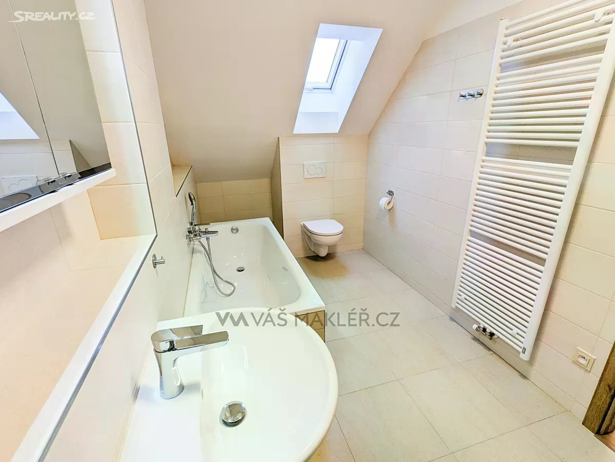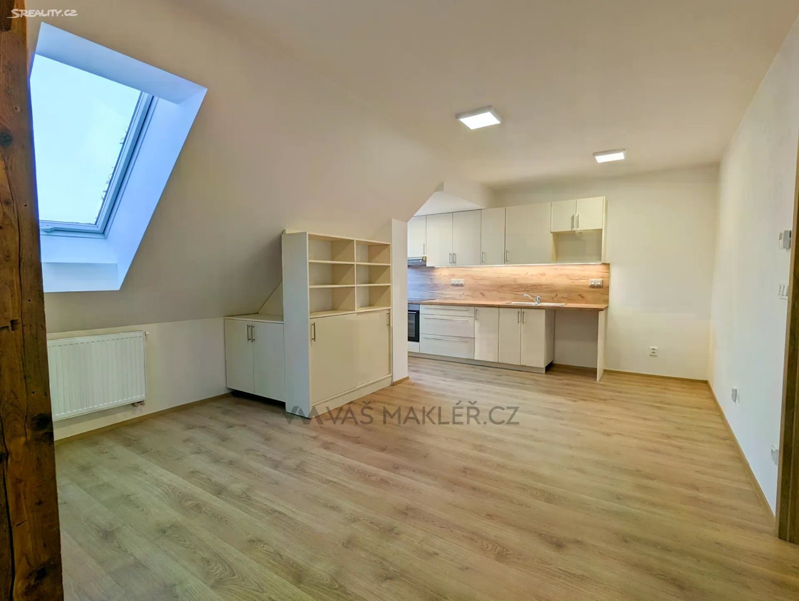 Nabízím Vám bydlení v novém bytě 2+kk (54 m2), po kompletní rekonstrukci v malém obytném domě. Byt má přednosti podkrovního bytu a současně si zachovává využití vnitřního prostoru jako normální byt. Dispozice bytu je ideální, ze vstupní chodby je vstup do obývacího pokoje s kuchyňským koutem. Z obýváku je vstup do ložnice a koupelny s vanou a toaletou. Kuchyně je vybaven vestavnou skříní, kuchyňskou linkou vyrobenou na zakázku, indukčním sporákem, elektrickou troubou a digestoří, s přípravou na myčku a lednici s mrazákem. Vytápění bytu zajišťuje vlastní kotel. Byt je po pěkné a nákladné rekonstrukci s použitím kvalitních materiálů, je světlý a v klidném domě. V budoucnu bude možné využívat i společnou zahradu. K dispozici je sklep. Byt je určen k dlouhodobému pronájmu. Více informací a prohlídku bytu Vám rád zajistím, kontaktujte mě prosím.
