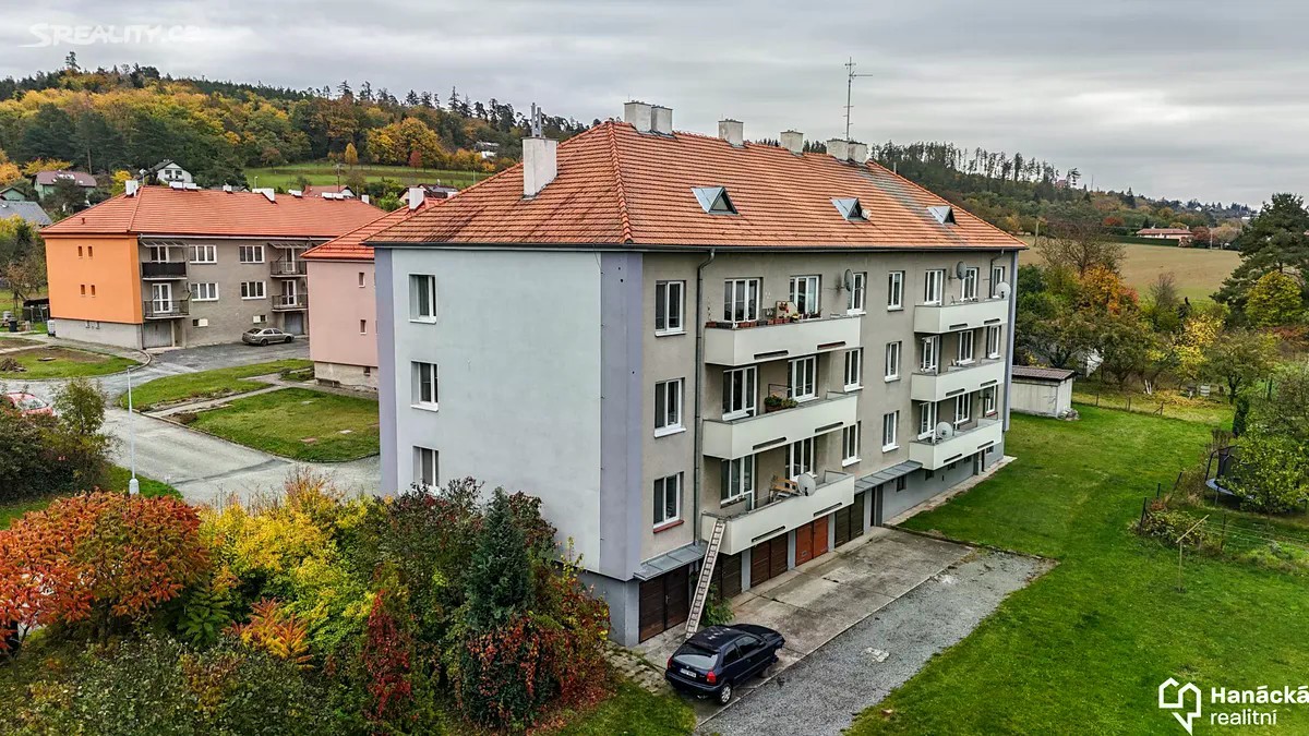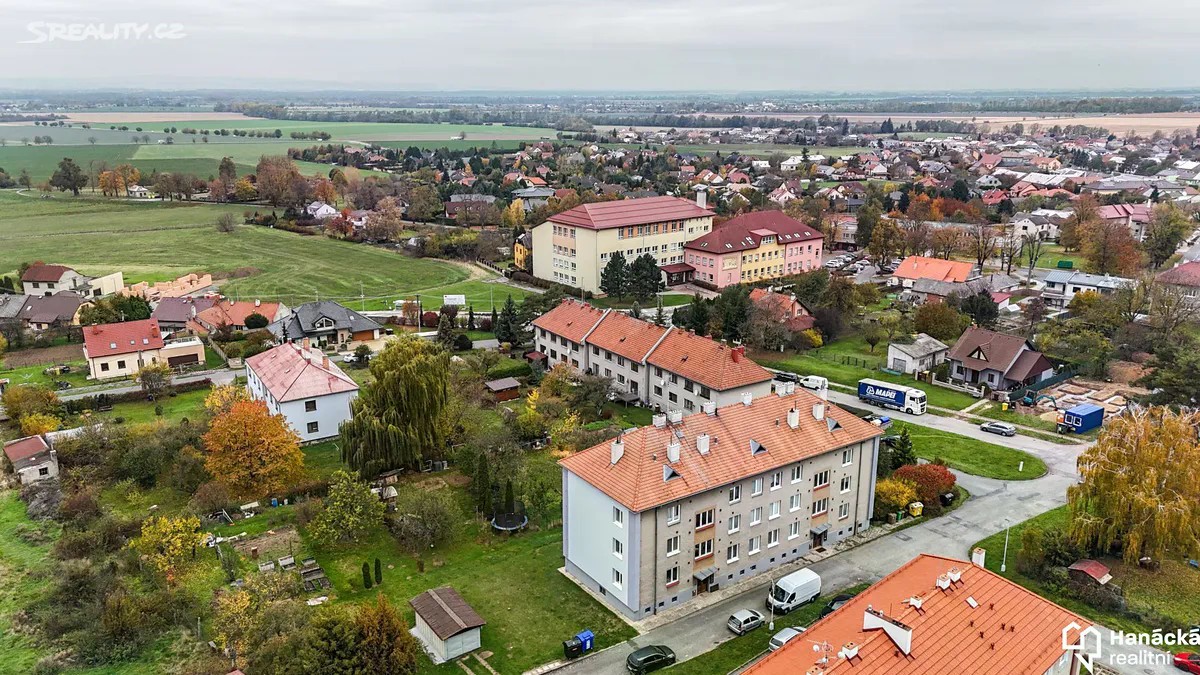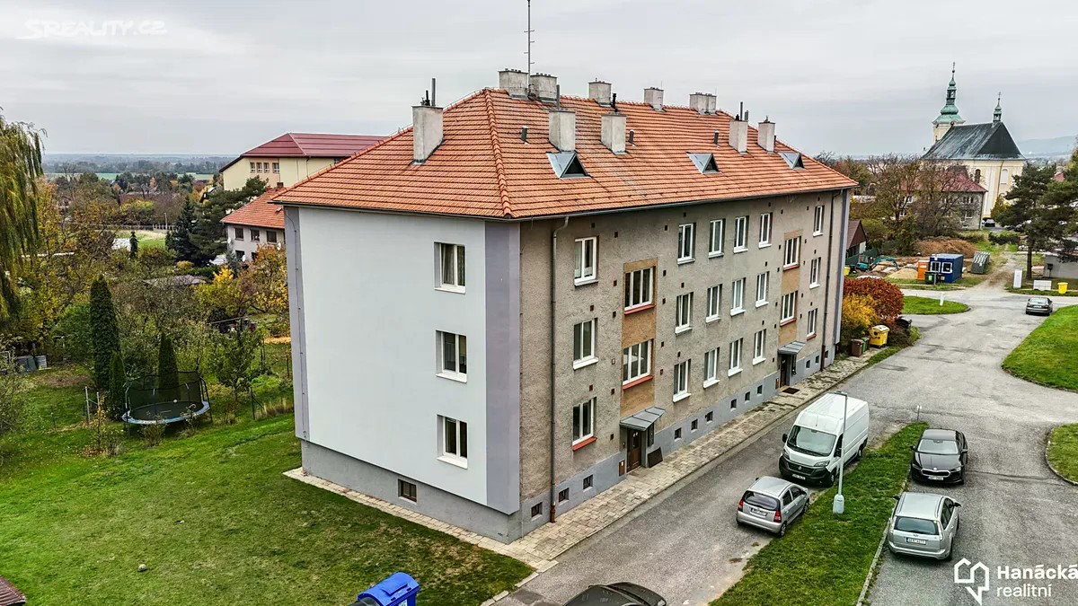 Prodej cihlového bytu 3+1 s lodžií v obci Dolany u Olomouce. Výměra bytu činí 70 m2 + lodžie a dva sklepy. Byt se nachází v 1. patře bez výtahu, je situován na východní, jižní a západní stranu. Bok domu je zateplen. Byt prošel významnou rekonstrukcí. K dispozici jsou zcela nové rozvody elektřiny v mědi, nové rozvody vody a odpadů. Ve všech třech pokojích, které jsou neprůchozí, jsou původní dřevěné parkety a částečně opravené omítky. V pokoji, ze kterého je vstup na venkovní lodžii, je provedena hlukově odizolovaná stěna k sousedícímu bytu. Bytové jádro a kuchyň jsou připraveny na dokončení, společně s chodbou jsou hotové nové podlahy. Vytápění bytu je řešeno pomocí samostatného plynového kotle, který je umístěný v jednom ze sklepů. Ohřev vody bude řešen elektrickým bojlerem v koupelně. Měsíční náklady činí 1.604 Kč + elektřina a plyn. K bytu dále patří kolárna, kočárkárna, možné využívat také venkovní zahradu. Dům se nachází v klidné části obci Dolany, v blízkosti je základní škola, pediatr. Obec Dolany má veškerou občanskou vybavenost, ideální pro rodinné bydlení. Volný je ihned, prodeji nebrání žádná právní překážka. Další informace Vám rád sdělí makléř HRK