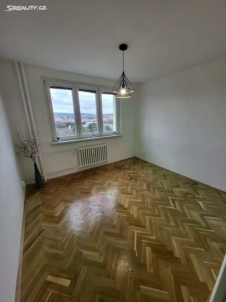 Pronájem zrekonstruovaného bytu 3+1 v klidné ulici v Černých Polích s výhledem na Brno, výtahem do patra a k nastěhování od PROSINCE. V bytě se aktuálně nacházejí nájemníci s platnou nájemní smlouvou do konce listopadu. Byt, nacházející se v osmém nadzemním patře, prošel kompletní rekonstrukcí v roce 2023. Byt má dva samostatné neprůchozí pokoje s parketami po renovaci a jeden průchozí, chodbu, kuchyň, koupelnu se sprchovým koutem (140x80cm), samostatné WC, šatnu a prostorný balkon. Je vybaven kuchyňskou linkou s myčkou, elektrickou varnou deskou, troubou, digestoří, lednicí s mrazákem a mikrovlnkou. V jednom pokoji je LED osvětlení s možností úpravy barvy a teploty světla vypínačem, zbytek osvětlení v bytě je LED úsporné. Okna jsou plastová. Dům je pod kamerovým systémem. K bytu náleží suchá sklepní koje. Možnost parkování je v okolí, před domem je manipulační prostor pro krátkodobé zastavení. Pokoje jsou situovány na západ, balkon na sever. Bytový dům je po celkové revitalizaci - zateplení, rozvody elektřiny, nový, prostorný výtah, který jede přímo na patro, nikoliv do mezi patra. Vytápění i ohřev vody je zajištěn centrálně, plyn je odpojen. Nájemné 25.000 kč měs. + zálohy na teplo, vodu, elektřinu a služby 5.500 kč, + vratná kauce 40.000 kč. Možnost přepisu elektřiny na nájemníka. Byt je nekuřácký a s preferencí bez domácích mazlíčků z důvodu parket. V případě přítomnosti domácích mazlíčků bude výše nájmu a kauce adekvátně upravena. V blízkosti je dětské hřiště, škola, potraviny, posilovna, NC Královo Pole, 2 vysoké školy Mendelovy univerzity. V bytě není zavedena anténa ani rozvody pro internet.