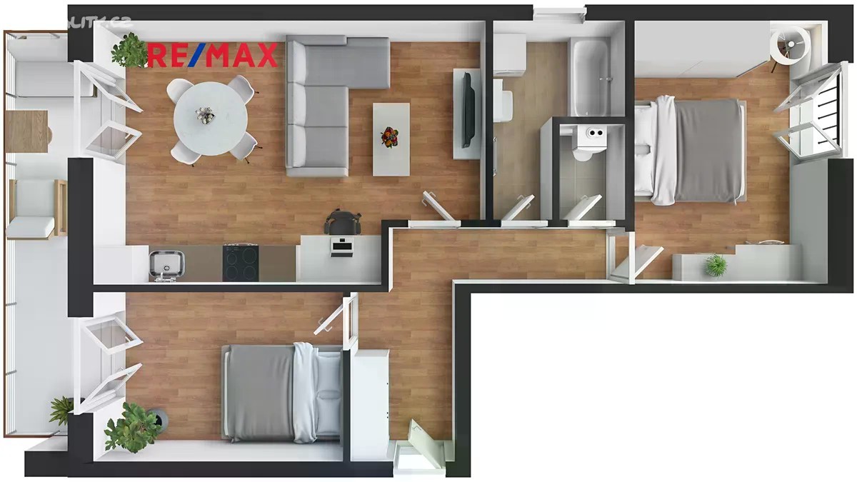 Nabízíme k prodeji moderní byt o dispozici 3+kk a výměře 63,8 m², který se nachází ve 2. nadzemním podlaží novostavby z roku 2023 v oblíbené části Beroun-Město. K bytu náleží prostorný balkon (10 m²), sklepní kóje (2 m²) a vlastní venkovní parkovací stání. Dům je vybaven výtahem. Dispozice bytu je velmi praktická - obývací pokoj s kuchyňským koutem (23,3 m²) je orientován na západ a navazuje na prostorný balkon s výhledem do klidného vnitrobloku. Ze stejné strany je přístupná i ložnice (10,3 m²), která nabízí vstup na balkon. Druhá ložnice (12,9 m²) je situována na východ. Velká francouzská okna o výšce 2 metry propouštějí dostatek denního světla a dodávají interiéru příjemně vzdušný dojem. Koupelna je vybavena vanou, toaleta je samostatná. O komfortní teplo se stará podlahové vodní vytápění s elektrickým kotlem, ohřev vody zajišťuje elektrický bojler. Součástí prodeje je moderní kuchyňská linka IKEA s vestavěnými spotřebiči - lednicí, myčkou, troubou, indukční varnou deskou a digestoří. Po dohodě je možné ponechat i další vybavení. Byt se nachází v klidné části města s kompletní občanskou vybaveností doslova na dosah - naproti domu je soukromá základní a mateřská škola, v docházkové vzdálenosti gymnázium, obchody, restaurace i služby. Autobusová zastávka je tři minuty chůze od domu, přímé linky směřují na Prahu-Zličín (cca 30 minut) i Nové Butovice (cca 25 minut). Na vlakové nádraží Beroun dojdete pěšky za 15 minut, autem se na dálnici D5 dostanete během 2 minut. Přesto zde panuje klid a příjemné bydlení bez hluku. Součástí společných venkovních prostor je i malé dětské hřiště. Tento byt představuje ideální volbu pro ty, kteří hledají moderní a pohodlné bydlení v atraktivní lokalitě Beroun s výborným spojením do Prahy.