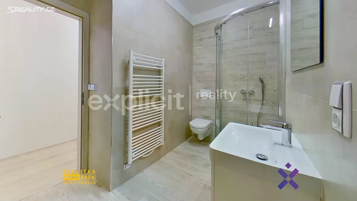 EXPLICIT REALITY a Mgr. Alice Nováková vám nabízí exkluzivní pronájem bytu o velikosti 2+kk, 61 m² se zahradou 54 m², v novostavbě Vila Smetanova, kde v okolí naleznete klid a zároveň jste přímo v centru. Obývací část o velikosti 31 m² s moderním kuchyňským koutem, který je vybaven indukčním varnou deskou, vestavnou myčkou a velkou lednicí s mrazákem. Ložnice o velikosti 17 m² s velkým prostorem pro šatní skříň. V moderní koupelně je sprcha a také příprava pro připojení pračky a sušičky. Byt je vytápěn podlahovým vytápěním a pro horké letní dny disponuje klimatizací. Ohřev vody zajišťuje bojler. K bytu se přímo na chodbě nachází víceúčelová komora o velikosti 4 m², kde je i elektrická zásuvka třeba pro dobití vašeho elektrokola. Velkou výhodou je také, že k bytu náleží parkovací stání přímo před domem, které je zohledněno v ceně nájmu. Byt je k nastěhování od 1.12.2025 Celkové nájemné činí 16 000 Kč + 5 000 Kč zálohy na energie + vratná kauce ve výši jednoho nájemného 21 000 Kč + zprostředkování RK Neváhejte si sjednat prohlídku tohoto krásného moderního bytu v novostavbě. Jsem zde pro vás. Alice Nováková & EXPLICIT REALITY