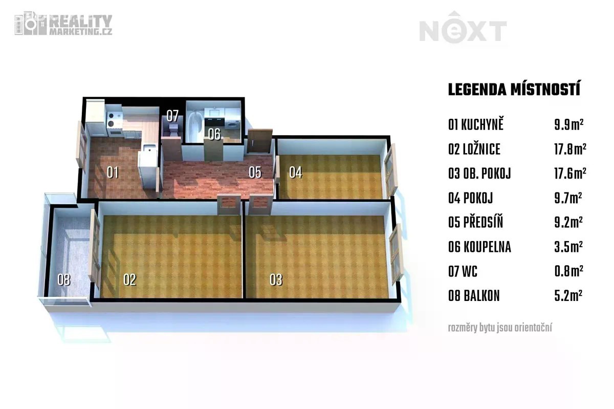 V exkluzivním zastoupení nabízíme k prodeji krásný, velmi dobře dispozičně řešený byt 3+1 o velikosti 71 m², který poskytuje dostatek prostoru i soukromí pro celou rodinu. Všechny pokoje jsou neprůchozí, což zaručuje pohodlí a klid pro každého člena domácnosti. Byt prošel moderní rekonstrukcí - nové elektrické rozvody, rozvody vody a odpadů, zcela nová koupelna a WC, plastová okna. V obytných místnostech jsou zachované krásné dřevěné parkety, které prostoru dodávají teplo a nadčasovou eleganci. Dispozice bytu: prostorná chodba - 9,2 m² obývací pokoj - 17,6 m² ložnice - 17,8 m² (se vstupem na zasklenou lodžii 5,2 m², ideální místo pro ranní kávu nebo večerní odpočinek s výhledem do klidného okolí). dětský pokoj nebo pracovna- 9,7 m² kuchyně - 9,9 m² koupelna - 3,5 m² samostatné wc 0,8m2. Součástí prodeje je také vlastní zděná garáž přímo pod bytem, což je velkou výhodou nejen pro parkování, ale i pro využití jako praktický úložný prostor. K bytu náleží sklep a v domě je k dispozici společná kočárkárna a kolárna. Energetická náročnost budovy je vedena v tříde D. Byt se nachází v tiché a velmi oblíbené části města s výbornou občanskou vybaveností. V docházkové vzdálenosti najdete mateřskou i základní školu, dětské hřiště, Family park, zastávky MHD, restaurace i nákupní zónu. Velkým bonusem je dětské hřiště přímo za domem - ideální pro rodiny s dětmi. Milovníci aktivního odpočinku ocení cyklostezky v blízkém okolí, které vedou až do centra Brna i do přírody. Byt je k nastěhování ihned. Kontaktujte makléře a domluvte si termín prohlídky ještě dnes. Pro komunikaci uvádějte evidenční číslo zakázky N114755.