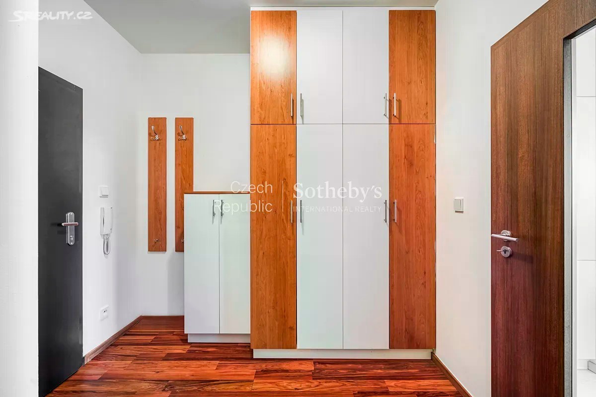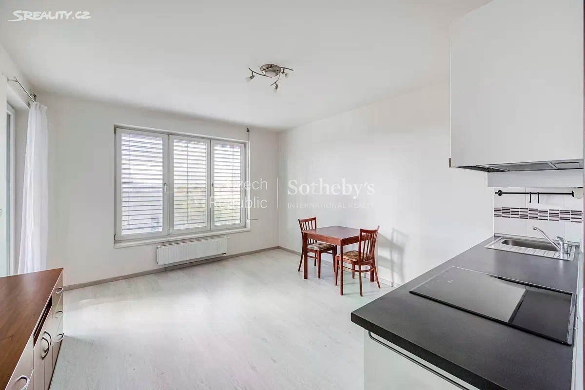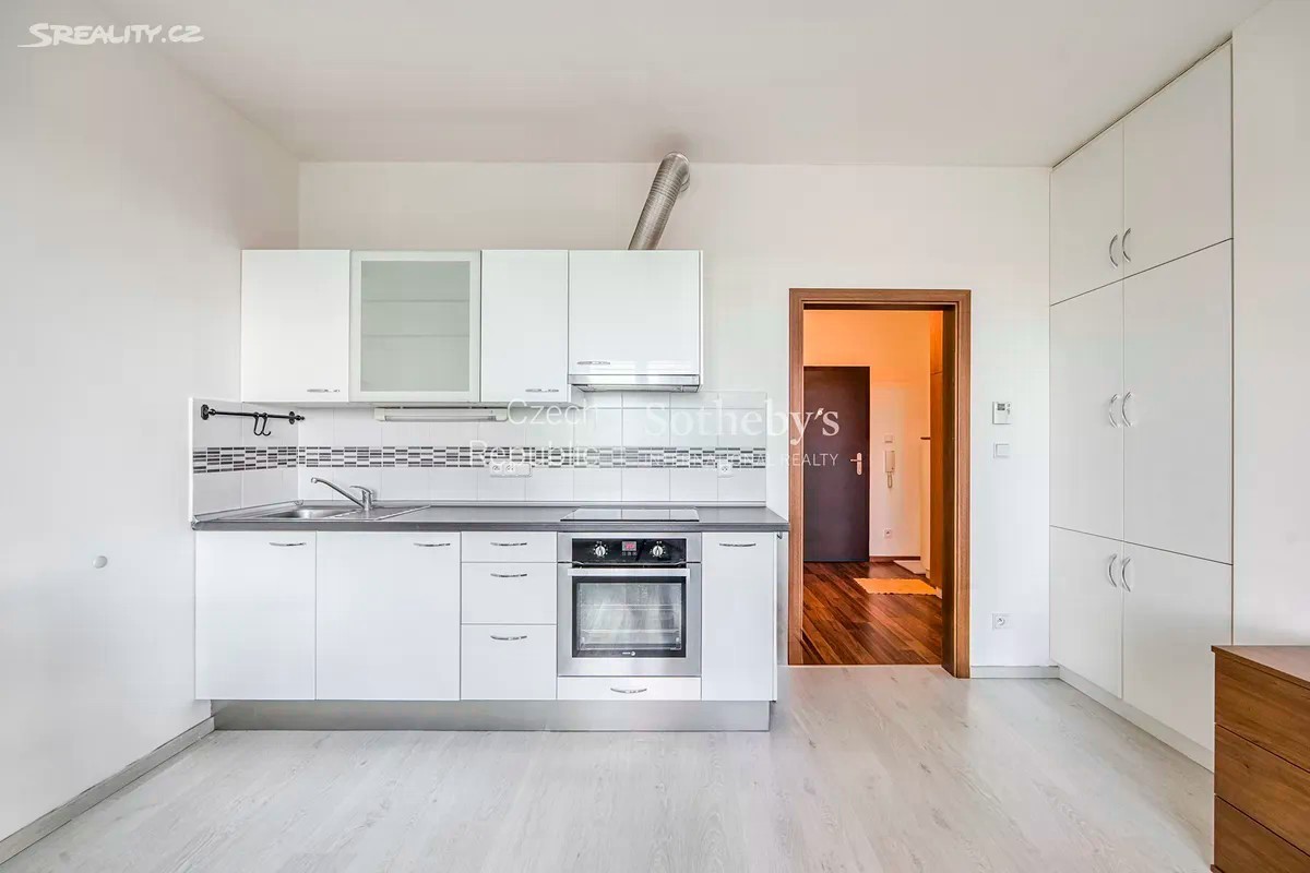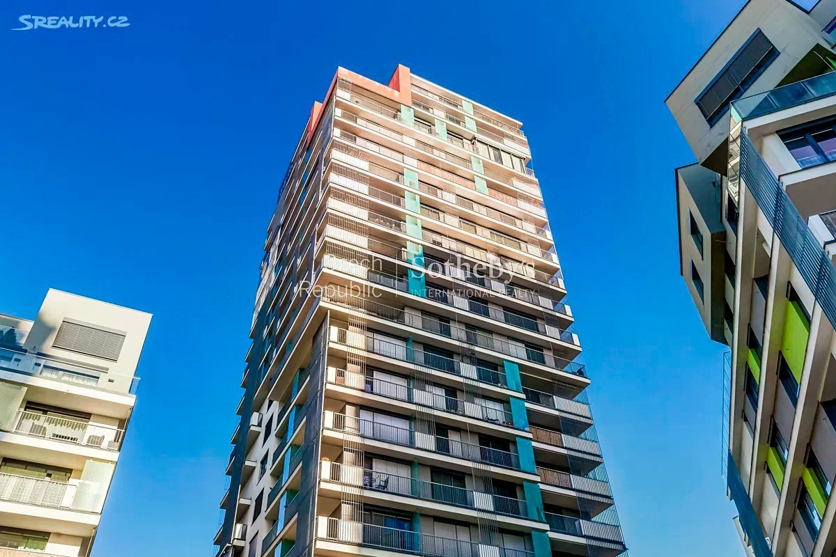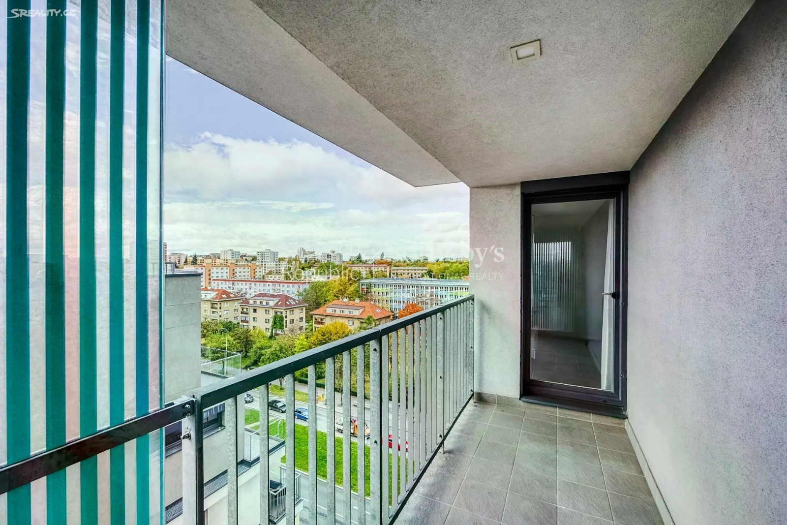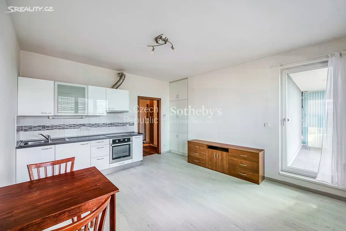 Czech Republic Sotheby's International Realty nabízí k pronájmu moderní byt 1+kk s balkonem o celkové ploše 30,3 m², situovaný v devátém patře rezidenčního domu z roku 2013 s výtahem. Světlý interiér tvoří pokoj s kuchyňským koutem vybaveným indukční varnou deskou, troubou a dostatkem úložného prostoru. Nechybí ani jídelní kout a vestavěné skříně, které zajišťují praktické zázemí pro každodenní život. Koupelna je vybavena vanou a toaletou, vstupní předsíň nabízí další úložné prostory. Součástí pronájmu je garážové stání v objektu. Měsíční nájemné činí 17 000 Kč, poplatky za služby 4 600 Kč a garážové stání 2 500 Kč. Zálohy na elektřinu se převádějí na nájemce (cca 1 000 Kč měsíčně). Minimální délka pronájmu je jeden rok