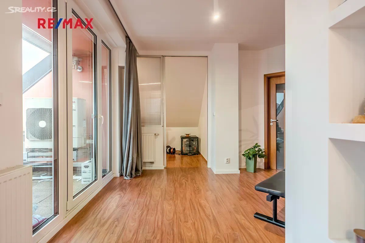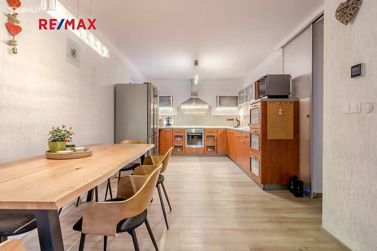 Hledáte bydlení, které spojuje moderní technologie, dostatek prostoru, klid a zároveň skvělou dostupnost do centra města? Tento výjimečný mezonetový byt o dispozici 4+kk v ulici Dvořákova v Kadani nabízí vše, co si náročnější zájemce může přát - styl, komfort, úspornost i kvalitní zázemí pro rodinný život. Byt se nachází ve 3. nadzemním podlaží zatepleného domu bez výtahu a prošel kompletní rekonstrukcí včetně všech rozvodů. K bytu náleží terasa o výměře 9 m², sklep, komora a parkovací stání. Celková podlahová plocha činí 174 m², z toho spodní část má 95.27 m² a horní 78.78 m². Při vstupu do bytu vás přivítá prostorná chodba, z níž se vchází do ložnice a do technické místnosti, kde je umístěno ovládání fotovoltaické elektrárny a dalších systémů. Dále se dostanete do moderní kuchyně propojené s obývacím pokojem, který je centrem rodinného života. Kuchyň je vybavena sklokeramickou deskou, myčkou, elektrickou troubou a digestoří. Ve spodní i horní části bytu se nachází koupelna s vanou, sprchovým koutem, umyvadlem a toaletou. Obě koupelny mají podlahové vytápění a jsou vybaveny závěsnými toaletami Geberit. V horním patře se dále nachází dva dětské pokoje, vstup na terasu ideální pro letní posezení či grilování a komora, která poslouží jako praktický úložný prostor. Byt je vybaven nejmodernějšími technologiemi, které zajišťují nejen vysoký komfort, ale i úsporný provoz. O vytápění a ohřev vody se stará tepelné čerpadlo TOSHIBA vzduch-voda, doplněné o fotovoltaickou elektrárnu s výkonem 4,6 kWp a bateriovým úložištěm o kapacitě 9,6 kWh. Díky tomu jsou provozní náklady na bydlení velmi nízké, přibližně 7 000 Kč měsíčně. Klimatizace značky DAIKIN zajišťuje příjemnou teplotu i v horkých dnech, přičemž okna s trojskly, předokenní žaluzie SOMFY s větrným a slunečním čidlem a motoricky ovládaná střešní okna VELUX přispívají k dokonalému komfortu. Střešní okna mají také předokenní rolety s dálkovým ovládáním. Na francouzských dveřích s úpravou SOLARSTOP oceníte vnitřní stínění, které lze ovládat motoricky, a na terase je umístěna manuálně výsuvná markýza. Byt má dále datové rozvody, elektronické zabezpečení vstupních dveří a je připojen na všechny inženýrské sítě včetně plynu, jehož přívod zůstává v technické místnosti zachován. Nemovitost se nachází v klidné části města Kadaň, v ulici Dvořákova, pouhé tři minuty jízdy od Mírového náměstí. Lokalita nabízí veškerou občanskou vybavenost v bezprostřední blízkosti - obchody jako Lidl, Penny, Kaufland či obchodní centrum, základní a mateřské školy, střední školy a učiliště, poštu, sportovní a dětská hřiště i restaurace. Zastávka MHD je vzdálená jen 3 minuty chůze. Tento byt je díky své velikosti, promyšlené dispozici a nadstandardnímu vybavení ideální jak pro rodinu, tak pro ty, kteří hledají prostorný a reprezentativní byt s moderním zázemím. Pokud vás nabídka zaujala, neváhejte mě kontaktovat a domluvte si osobní prohlídku.