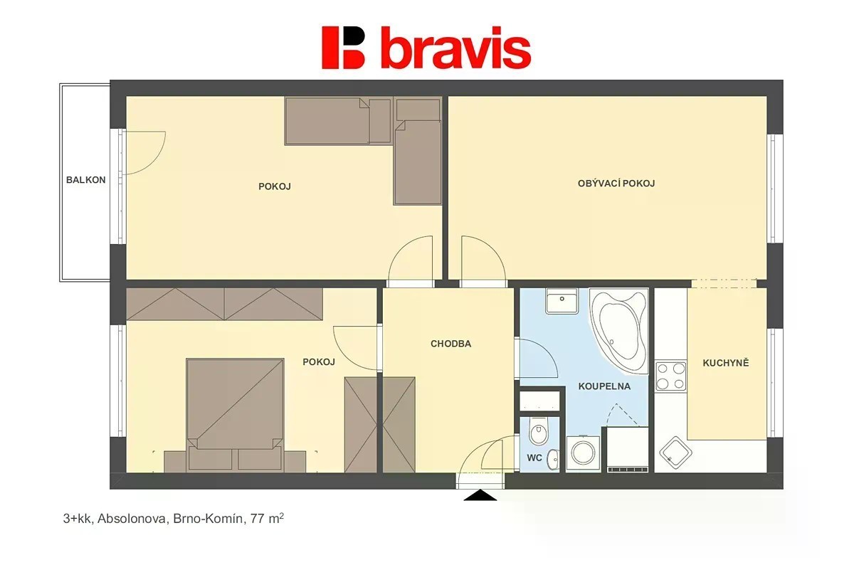 Pronájem bytu 3+kk 74 m² Absolonova, Brno - Komín