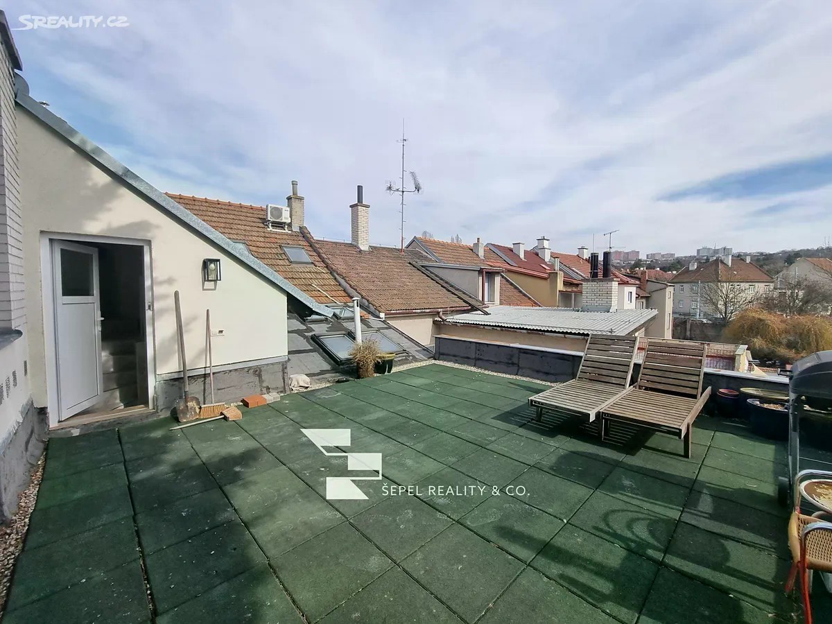 Se souhlasem majitele nabízíme k dlouhodobému pronájmu nezařízený ateliér 2+kk s terasou Brno - Židenice, ulice Čejkova. Atelier se nachází v podkroví domu v klidné ulici s výbornou dostupností do centra města. Zastávky MHD 300m od domu, v blízkosti je veškerá občanská vybavenost. Ateliér je vhodný pro 1-2 osoby a bude připraven k užívání od 1.1.2026. Kuchyňská linka se spotřebiči: elektrická varná deska a elektrická trouba, dřez a baterie. Jinak nezařízeno. Koupelna má sprchový kout a je dohromady s WC. K dispozici je i pračka. V pokoji je klimatizace. Možnost internetu. Dispozice: pokoj s kk 21,60m², pokoj 13,50m², koupelna s WC 7,80m², schodiště a chodba 11m², terasa 30m². Náklady na provoz ateliéru cca 3.000,-Kč/měsíc, majitel požaduje vratnou jistotu ve výši 2 měsíčních nájmů. Pro více informací, nebo prohlídku kontaktujte uvedeného makléře.