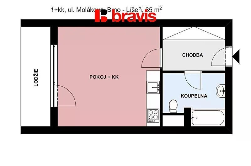 Ve výhradním zastoupení majitele nabízíme k pronájmu byt 1+kk v Brně - Líšni na ulici Molákova. Byt se nachází ve 2. patře cihlového domu s výtahem. Celková plocha bytu je 35m2. K bytu náleží lodžie, sklep a jedno vyhrazené parkovací stání za závorou, která je ovládaná dálkově. Kuchyně je zařízena linkou včetně spotřebičů ( varná elektrická deska, malá lednice, digestoř). V pokoji se nachází obytná stěna, jinak je pokoj prázdný a je z něj vstup na lodžii. Šatní skříň se nachází v chodbě. V koupelně je vana, umyvadlo, přípojka na pračku a toaleta. V okolí bytu je je veškerá občanská vybavenost. Zastávka MHD cca 1min. pěšky. Umístění bytu je v blízkosti lesoparku Bílá hora, Velká Klajdovka, Mariánské údolí atd. Nedaleko domu se nachází obchodní centrum Albert, restaurace, obchodní komplex aj. Do centra města Brna je to MHD 12 minut. Možnost zajištění jednorázového či pravidelného úklidu naší úklidovou firmou. V případě Vašeho zájmu Vám můžeme nabídnout online prohlídku nemovitosti. Prohlídky jsou možné kdykoliv po domluvě s uvedeným makléřem.