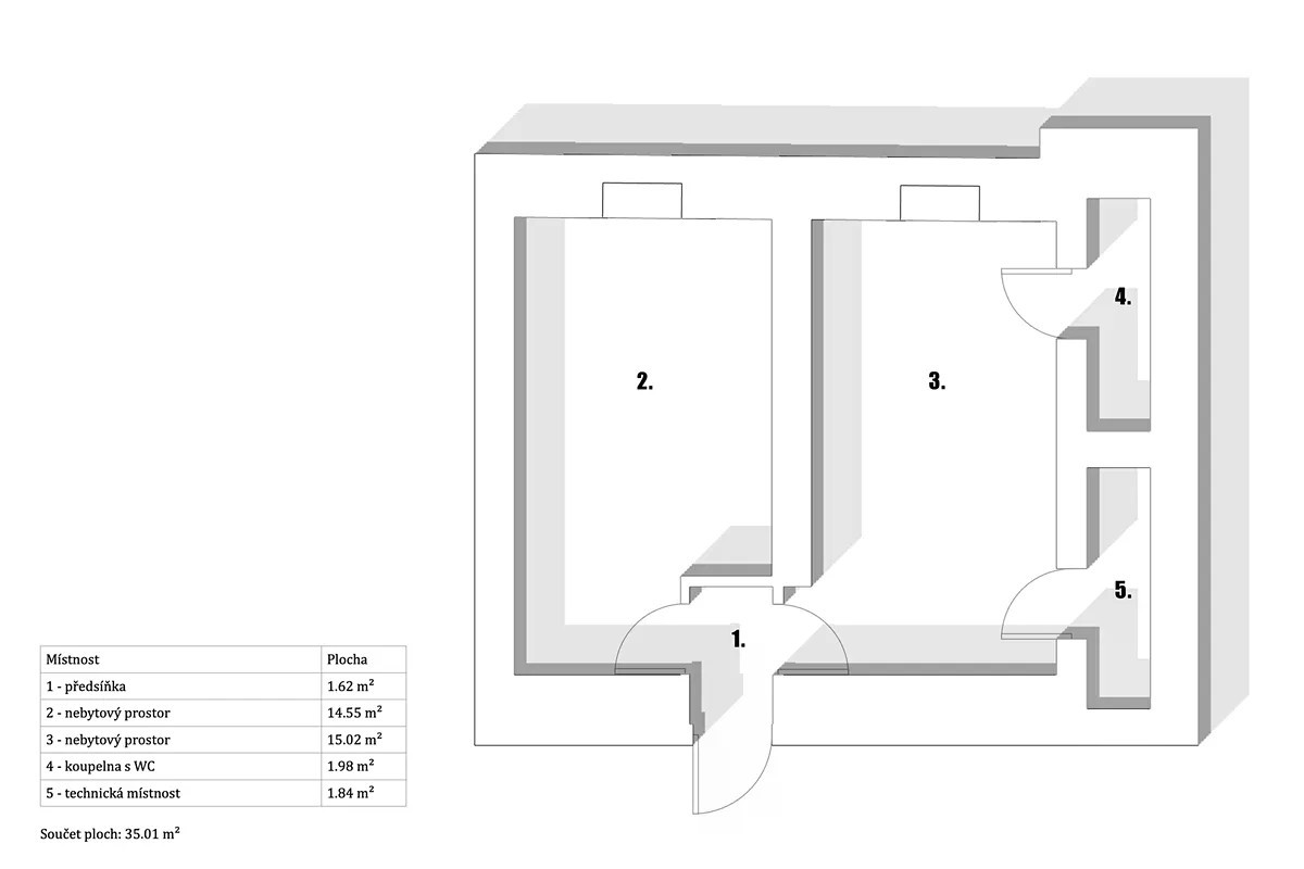 Exkluzivní investiční nabídka nebytového prostoru o dispozici 2kk upraveného na bydlení v centru Prahy, ul. Řehořova. Velmi malé měsíční zálohy na služby, a to pouze 563 Kč + energie dle skutečné spotřeby. Velikost 35 m2 - rozměry jednotlivých místností a dispozice, dle přiloženého plánku. Součástí fotek jsou i vizualizace možného řešení prostoru. Osobní vlastnictví: • možnost financovat hypotékou, • možnost umístění trvalého bydliště. Byt se nachází v 1. PP (snížené přízemí) pětipodlažního cihlového domu. Průkaz energetické náročnosti budovy (PENB) hodnota E. V rámci domu k dispozici vlastníkům zahrada přístupná z 2. NP domu. Byt je po částečné rekonstrukci, dlouhodobě užíván pro bydlení. • Vytápění - plynový kotel. • Teplá voda - elektrický bojler. • Neprůchozí pokoje. • Zánovní kuchyňská linka. Orientace bytu na jih. V okolí domu veškerá občanská vybavenost. Vynikající dostupnost MHD: • metro C Hlavní nádraží, • vlak - Hlavní nádraží, • tramvaj - zastávka Viktoria Žižkov Více informací u makléře.